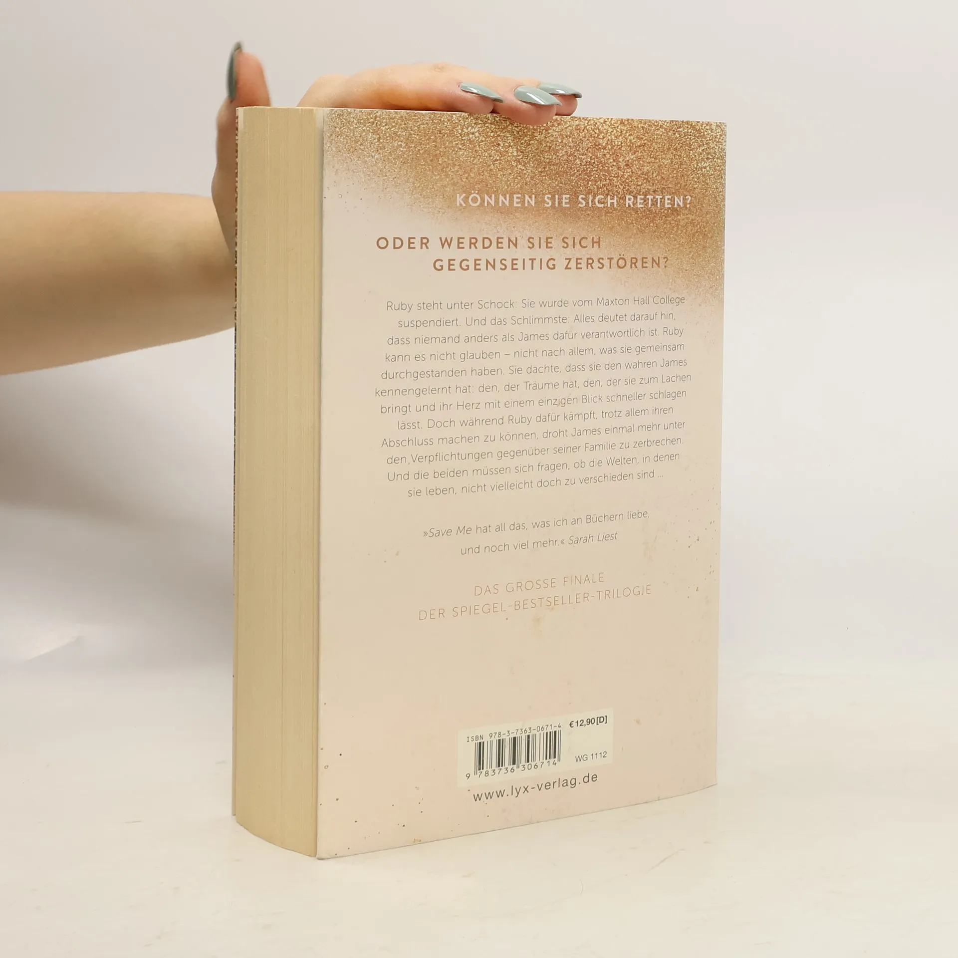 Können sie sich retten? Oder werden sie sich gegenseitig zerstören? Ruby steht unter Schock: Sie wurde vom Maxton-Hall-College suspendiert. Und das Schlimmste: Alles deutet darauf hin, dass niemand anders als James dafür verantwortlich ist. Ruby kann es nicht glauben - nicht nach allem, was sie gemeinsam durchgestanden haben. Sie dachte, dass sie den wahren James kennengelernt hat: den, der Träume hat, den, der sie zum Lachen bringt und ihr Herz mit einem einzigen Blick schneller schlagen lässt. Doch während Ruby dafür kämpft, trotz allem ihren Abschluss machen zu können, droht James einmal mehr unter den Verpflichtungen gegenüber seiner Familie zu zerbrechen. Und die beiden müssen sich fragen, ob die Welten, in denen sie leben, nicht vielleicht doch zu verschieden sind ... „ Save Me hat all das, was ich an Büchern liebe, und noch viel mehr.“ Sarah-liest „Gefühlvoll, mitreißend, voller Liebe.“ Nichtohnebuch Das große Finale der mitreißenden Liebesgeschichte von Ruby und James!