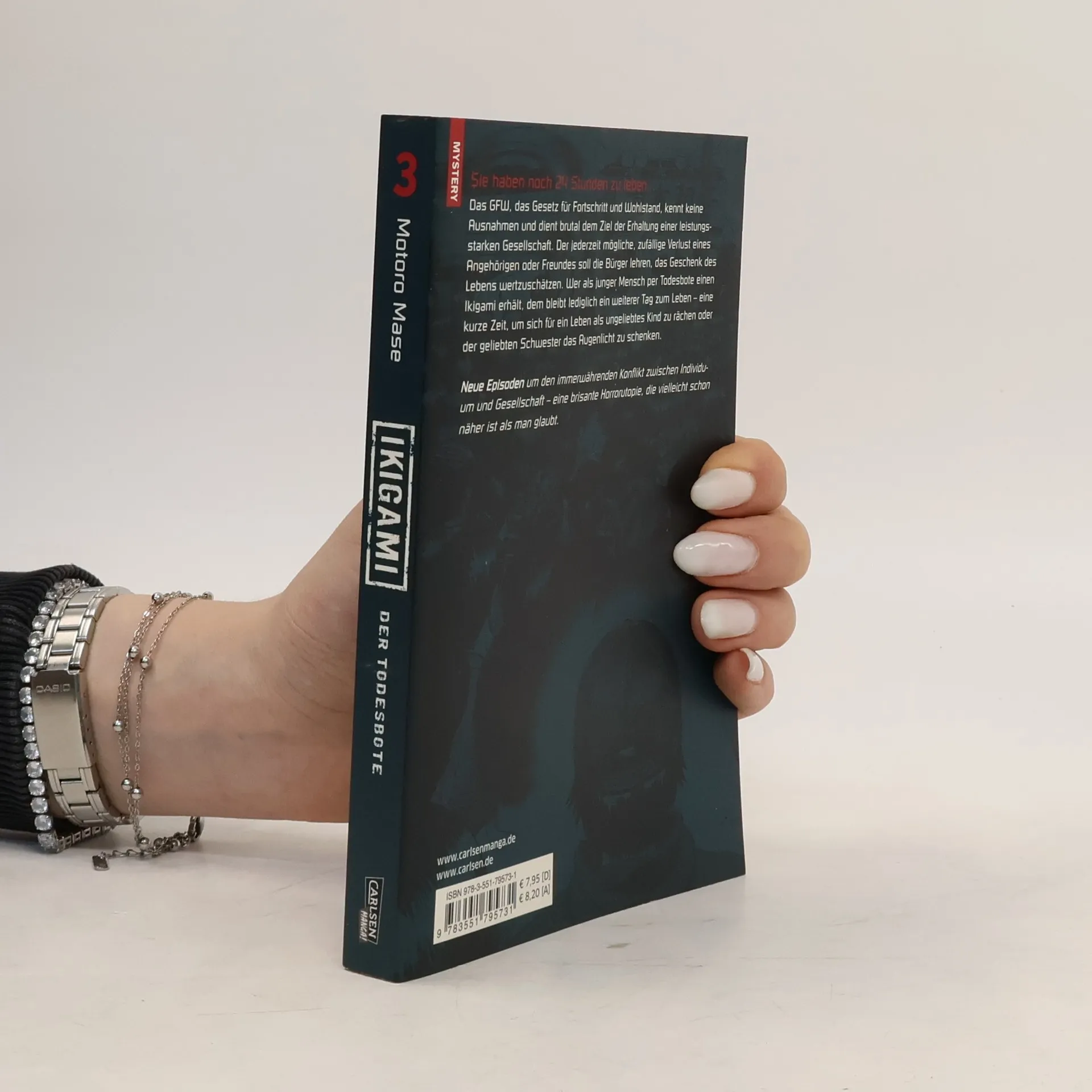 Sie haben noch 24 Stunden zu leben... Das GFW, das Gesetz für Fortschritt und Wohlstand, kennt keine Ausnahmen und dient brutal dem Ziel der Erhaltung einer leistungsstarken Gesellschaft. Der jederzeit mögliche, zufällige Verlust eines Angehörigen oder Freundes soll die Bürger lehren, das Geschenk des Lebens zu wertschätzen. Wer als junger Mensch per Todesbote einen Ikigami erhält, dem bleibt lediglich ein weiterer Tag zum Leben ‒ eine kurze Zeit, um sich für ein Leben als ungeliebtes Kind zu rächen oder der geliebten Schwester das Augenlicht zu schenken. Neue Episoden um den immerwährenden Konflikt zwischen Individuum und Gesellschaft ‒ eine brisante Horrorutopie, die vielleicht schon näher ist als man glaubt.