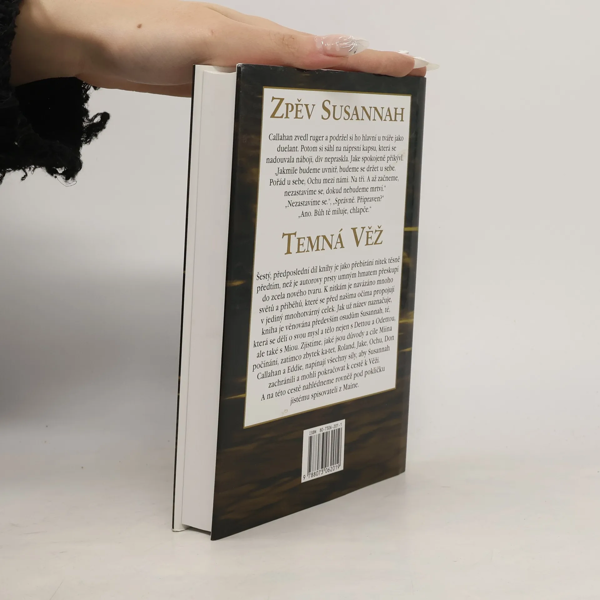 Šestý, předposlední díl knihy je jako přebírání nitek těsně předtím, než je autorovy prsty umným hmatem přeskupí do zcela nového tvaru. K nitkám je navázáno mnoho světů a příběhů, které se před našima očima propojují v jediný mnohotvárný celek. Jak už název naznačuje, kniha je věnována především osudům Susannah, té, která se dělí o svou mysl a tělo nejen s Dettou a Odettou, ale také s Miou. Zjistíme, jaké jsou důvody a cíle Miina počínání, zatímco zbytek ka-tet, Roland, Jake, Ochu, Don Callahan a Eddie, napínají všechny síly, aby Susannah zachránili a mohli pokračovat k cestě k Věži. A na této cestě nahlédneme rovněž pod pokličku jistému spisovateli z Maine.