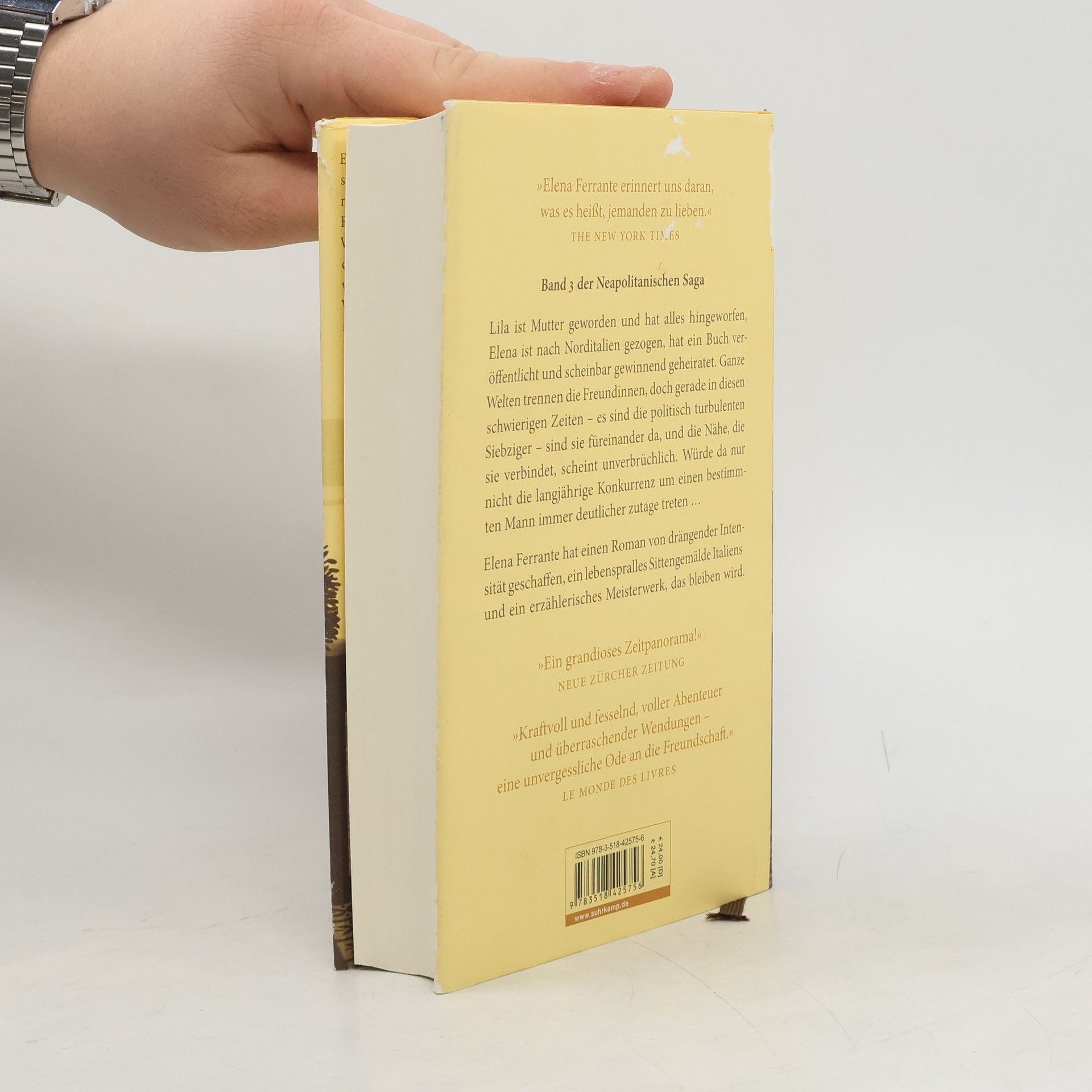Es sind die turbulenten siebziger Jahre und die beiden inzwischen erwachsene Frauen. Lila ist Mutter geworden und hat sich befreit und alles hingeworfen – den Wohlstand, ihre Ehe, ihren neuen Namen – und arbeitet unter entwürdigenden Bedingungen in einer Fabrik. Elena hat ihr altes neapolitanisches Viertel hinter sich gelassen, das Studium beendet und ihren ersten Roman veröffentlicht. Als sie in eine angesehene norditalienische Familie einheiratet und ihrerseits ein Kind bekommt, hält sie ihren gesellschaftlichen Aufstieg für vollendet. Doch schon bald muss sie feststellen, dass sie ständig an Grenzen gerät. Ganze Welten trennen die Freundinnen, doch gerade in diesen schwierigen Jahren sind sie füreinander da, die Nähe, die sie verbindet, scheint unverbrüchlich. Würde da nur nicht die langjährige Konkurrenz um einen bestimmten Mann immer deutlicher zutage treten.