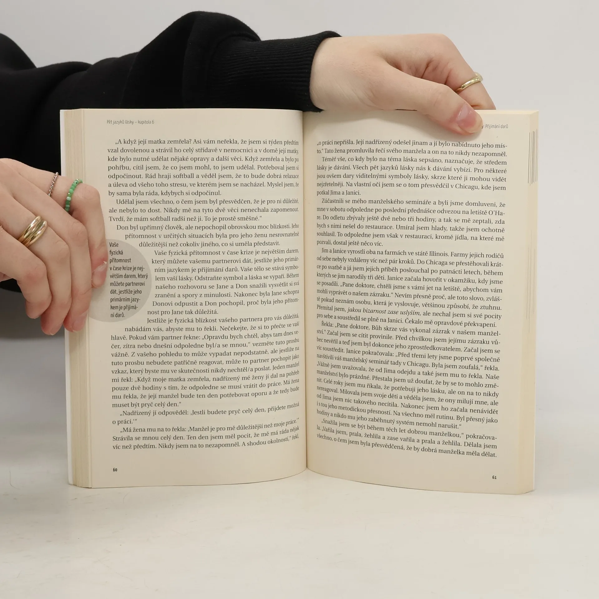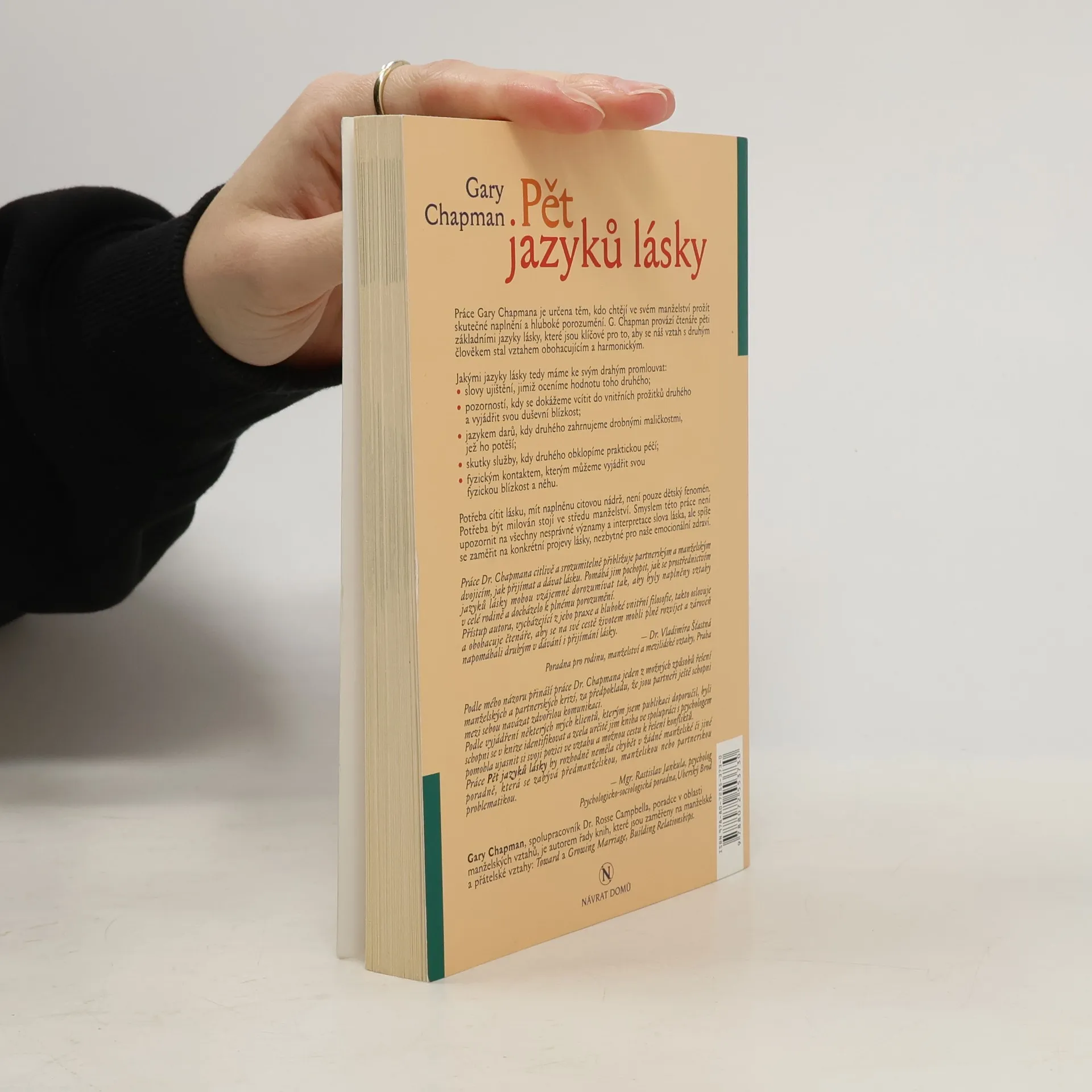 Tato kniha má potenciál výrazně zlepšit mezilidské vztahy. Zjistíme zde, že každý umí vyjadřovat a přijímat lásku jiným způsobem a proto zbytečně vznikají časté konflikty, že se cítíme nepochopeni a naše snaha nedoceněná. Toto dílo mnohé objasní.