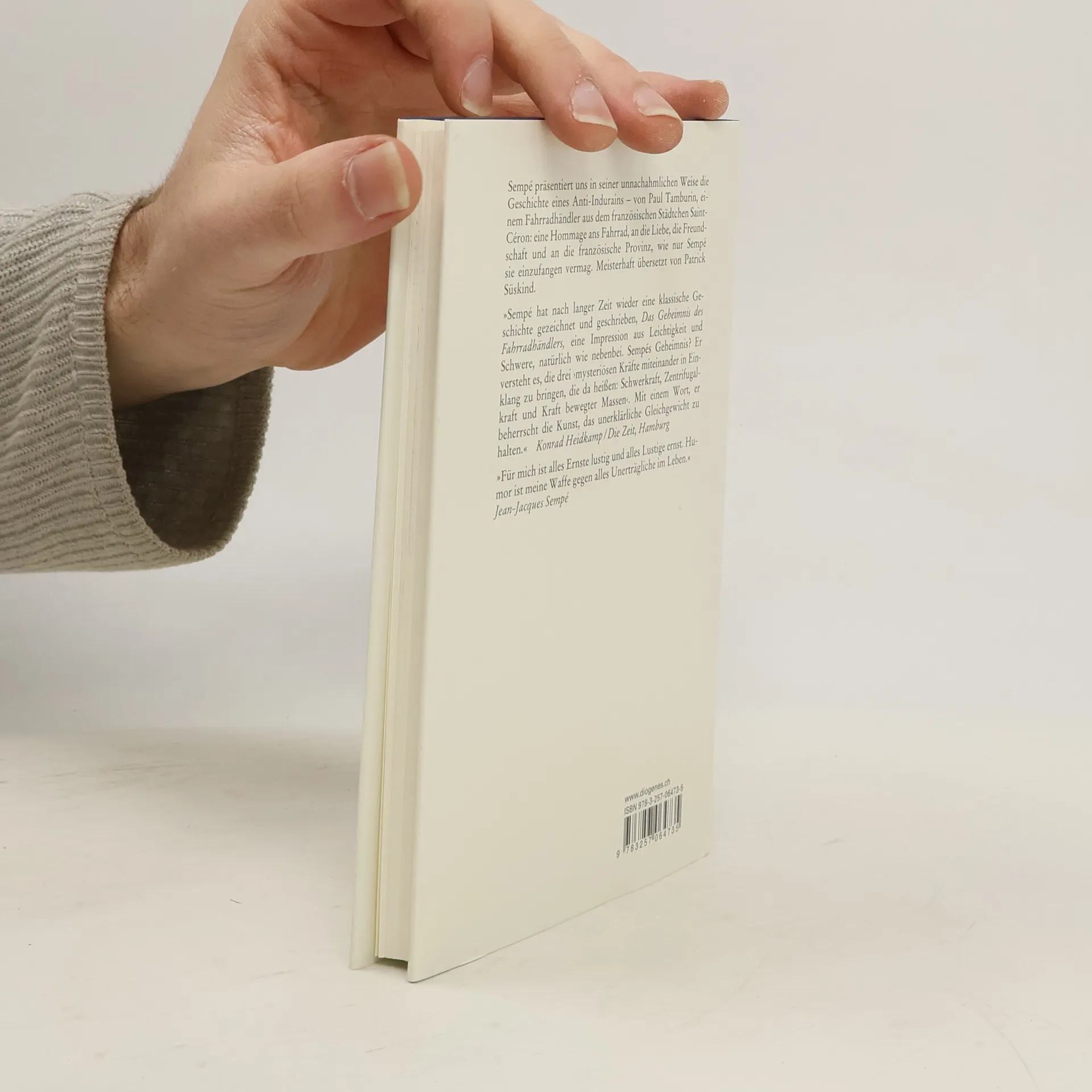 Sempé präsentiert uns in seiner unnachahmlichen Weise die Geschichte eines Anti-Indurains Paul Tamburins, des Fahrradhändlers aus dem französischen Städtchen Saint-Céron: eine Hommage ans Fahrrad, an die Liebe, die Freundschaft und an die französische Provinz, wie nur Sempé sie einzufangen vermag. Meisterhaft übersetzt von Patrick Süskind."