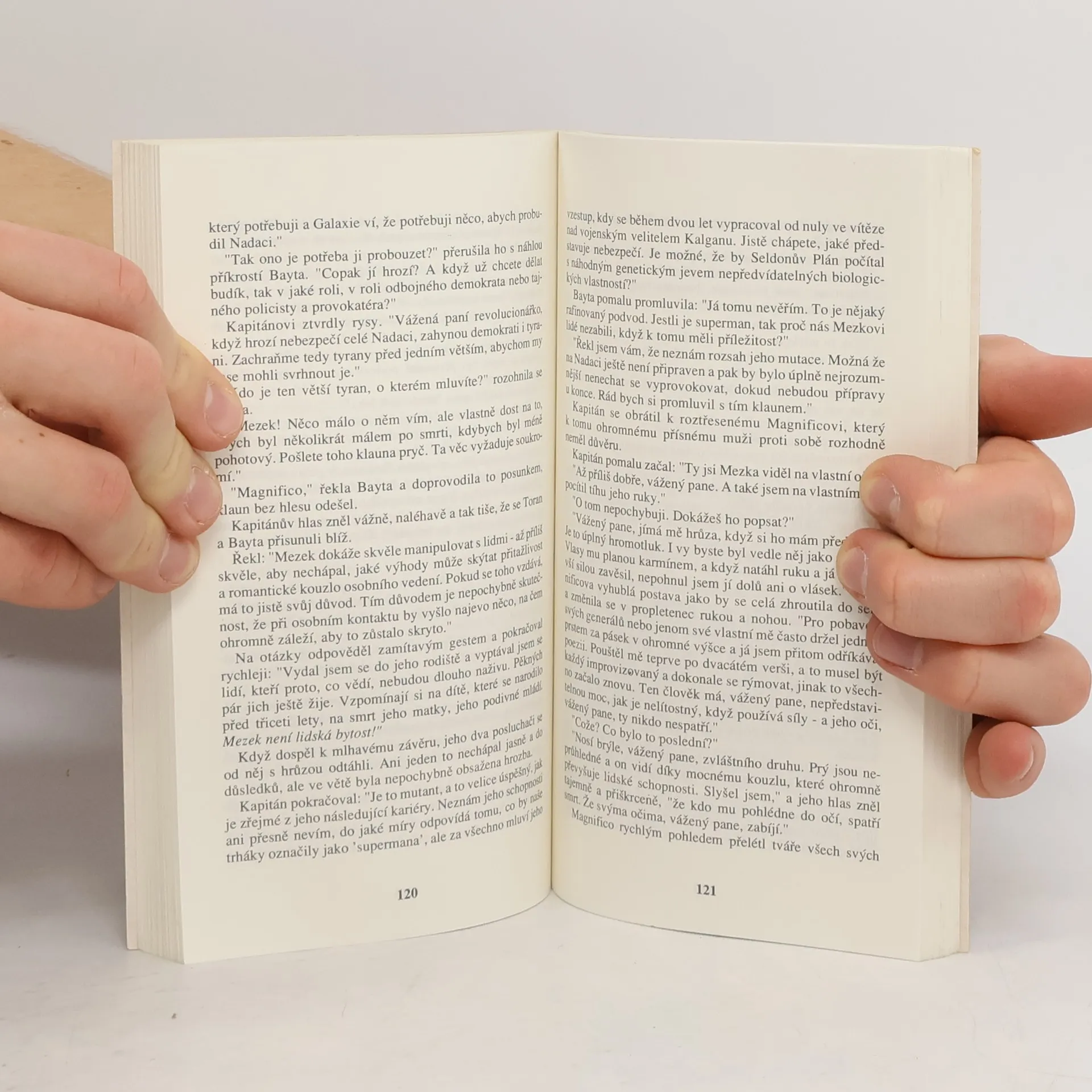 Proroctví Hariho Seldona se naplnilo. Nastal Pád. Kdysi mohutná galaktická Říše se rozpadla; jejím troskám teď vládne poslední císař Kleon II. Nadace však důsledně plní Seldonův původní plán – co nejvíce zkrátit období třiceti tisíc let předpokládaného období temna – a úspěšně překonává další krize. Na scénu však vstupuje činitel, s nímž nepočítal ani geniální psychohistorik: mutant s naprosto nepředvídatelnými biologickými vlastnostmi.... celý text