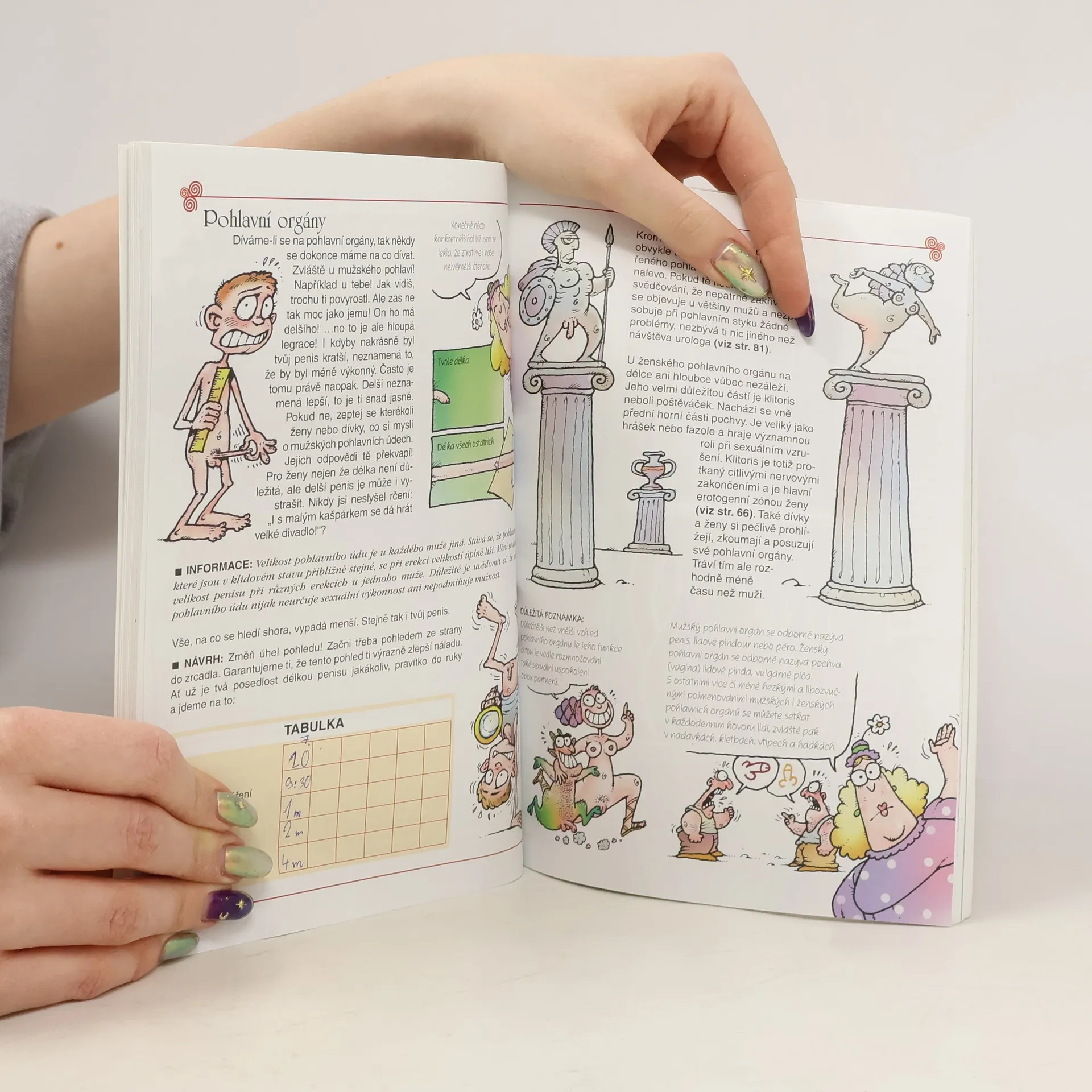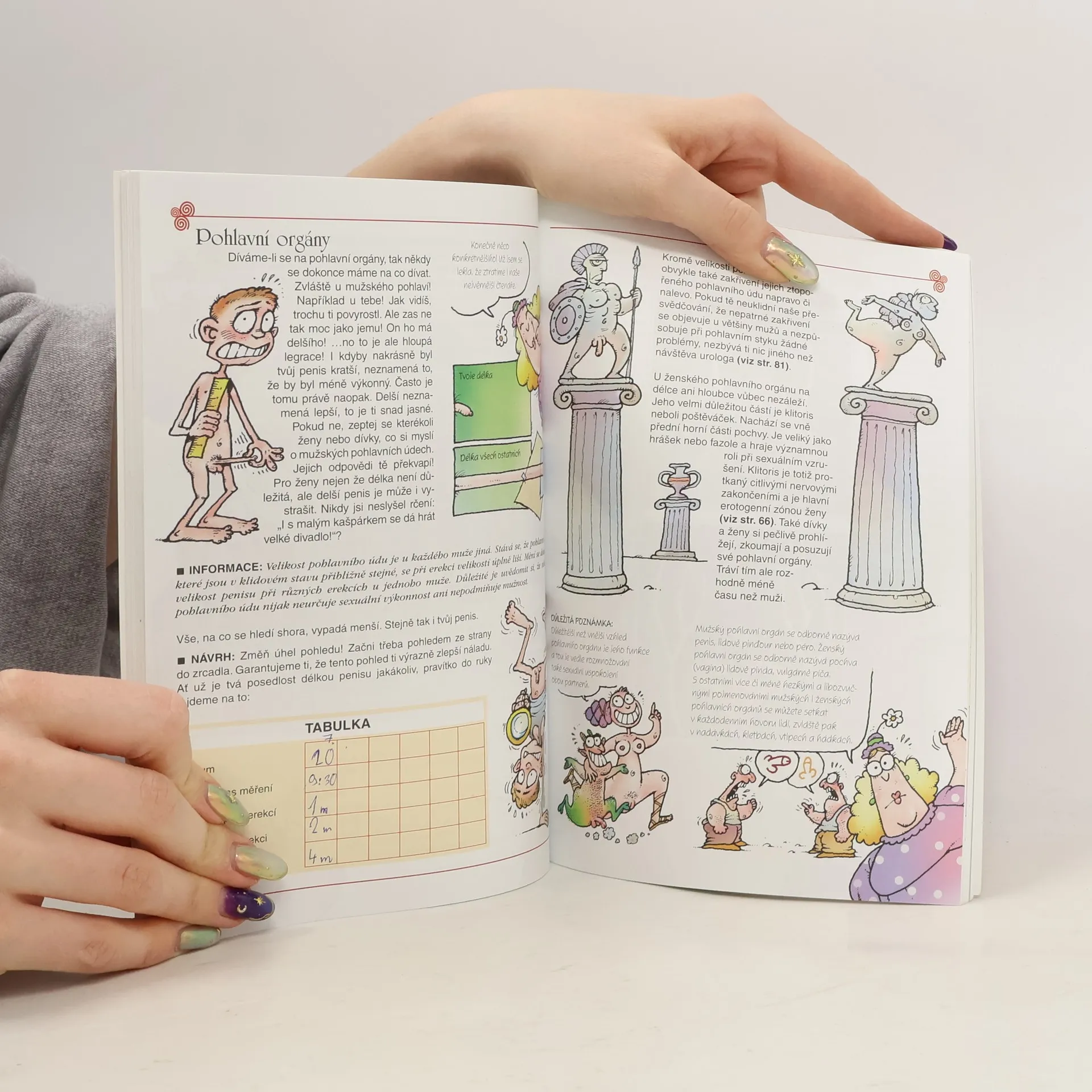 Především vtipně, ale zároveň také poučně napsaná příručka o sexu, která přináší základní informace o pohlavním dospívání a sexuálním životě. Příručka, kterou nás provedou dvě tety, je sestavena na způsob lexikonu, ačkoliv jednotlivé výrazy nejsou abecedně řazeny. Jsou doplněny fakty, vtipnými komentáři, poznámkami, mnohdy i odvážnými malůvkami. V první části se probírají obyčejná témata týkající se chlapců i dívek. To, co mají společné (stud, škola, komplexy), v čem se liší (způsob myšlení, tělesné znaky), i co je zajímá (flirtování, láska apod.) Druhá část se věnuje přímo sexuálním tématům, nechybí ani varování před stinnými stránkami sexu (pohlavní nemoci, incest apod.) Poslední část se zabývá sexuálními mýty.