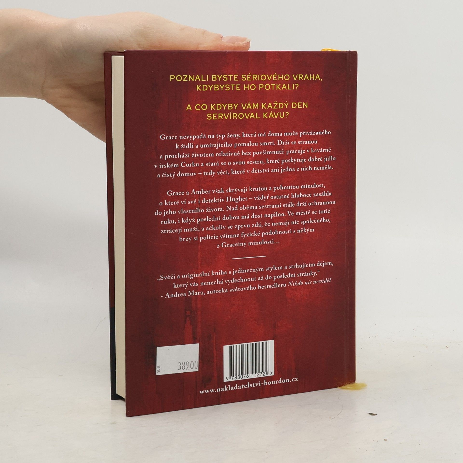 Poznali byste sériového vraha, pokud byste se s ním setkali? A co kdyby vám každý den servíroval kávu? Grace Murphy nevypadá jako ten typ ženy, která má doma pomalu umírajícího muže přivázaného k židli. Drží se stranou a prochází životem relativně bez povšimnutí: pracuje v kavárně virském Corku a stará se o svou sestru, které poskytuje dobré jídlo a čistý domov, tedy věci, které obě v dětství nikdy neměly. Detektiv Hughes o pohnuté minulosti Grace Murphy dobře ví, vždyť ostatně hluboce zasáhla do jeho vlastního života. Obě sestry stále čas od času kontroluje, poslední dobou je však příliš zaměstnán prací. Ve městě se totiž ztrácejí muži a zdá se, že spolu nemají nic společného – kromě fyzické podobnosti s někým z minulosti Grace Murphy…