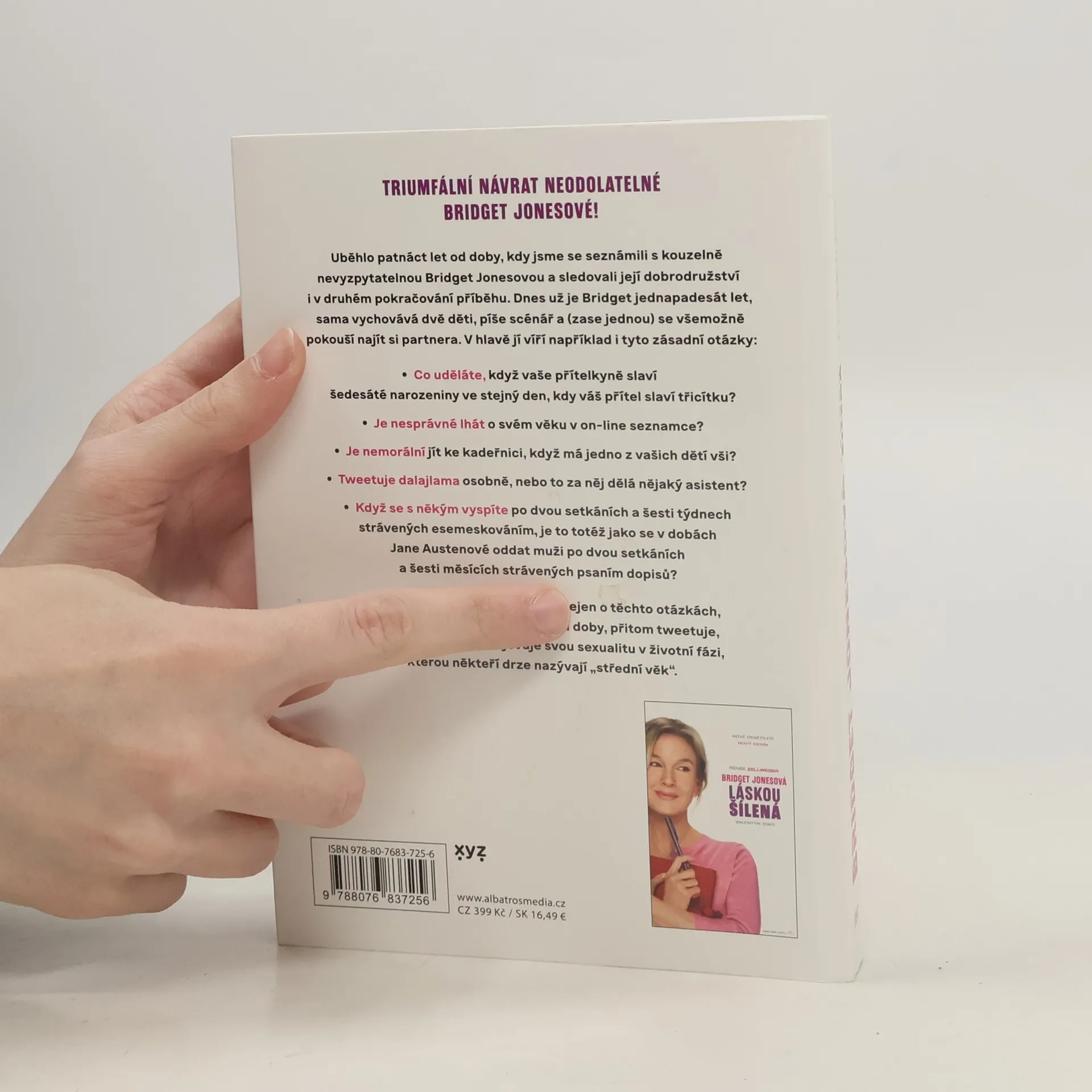 V životě Bridget Jonesové se čtrnáct let poté, co ulovila Marka Darcyho, leccos změnilo, ale hodně toho zůstalo při starém. I když teď sama vychovává dvě děti, řeší epidemie vší a už potřebuje brýle na čtení, pořád je stejný magnet na trapasy. Na ty si ale musí dávat pořádný pozor, když má teď 752 sledujících na Twitteru! Někde pod povrchem té současné „dospělé“ Bridget je ale pořád ta rozpustilá třicítka, která se do všeho vrhá po hlavě a věří v lásku až za hrob.