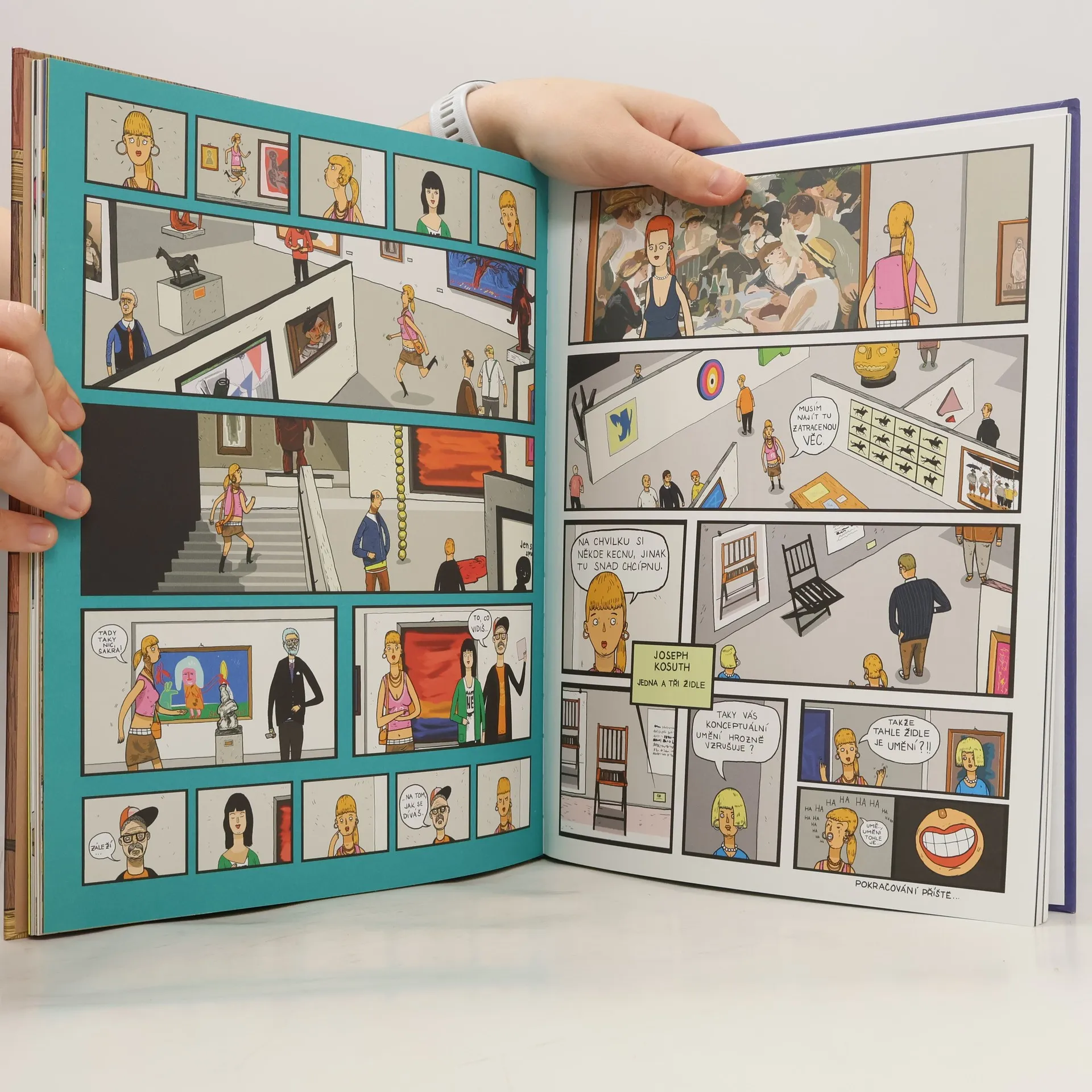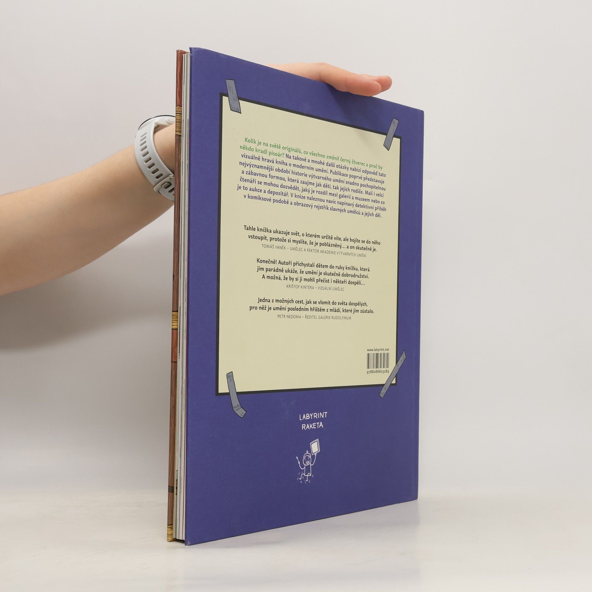 Kolik je na světě originálů, co všechno změnil černý čtverec a proč by někdo kradl pisoár? Na takové a mnohé další otázky nabízí odpověď tato vizuálně hravá kniha o moderním umění. Publikace poprvé představuje nejvýznamnější období historie výtvarného umění snadno pochopitelnou a zábavnou formou, která zaujme jak děti, tak jejich rodiče. Malí i velcí čtenáři se mohou dozvědět, jaký je rozdíl mezi galerií a muzeem nebo co je to aukce a depozitář. V knize naleznou navíc napínavý detektivní příběh v komiksové podobě a obrazový rejstřík slavných umělců a jejich děl.
