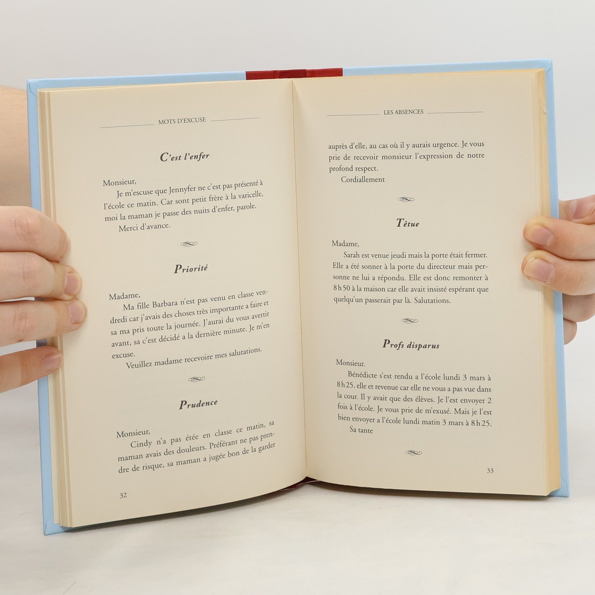 Plus attentifs au respect de leur progéniture qu'à l'usage du participe passé, les parents d'élèves n'hésitent pas à dégainer le stylo pour affronter l'ennemi : monsieur le professeur et madame la maîtresse. Et en vingt ans de métier, Patrice Romain en a vu passer, des vertes, des pas mûres, des qui font voir rouge et d'autres rire jaune. Incroyables parfois, mais toujours vrais, ces morceaux choisis sont authentiques, et qu'importe l'orthographe." Aprè tout, fôte avoué "..." Au-delà du sourire, ces petits mots sont également le reflet d'une société au quotidien, de sa culture et des éternels quiproquos entre familles et enseignants. " lepoint.fr