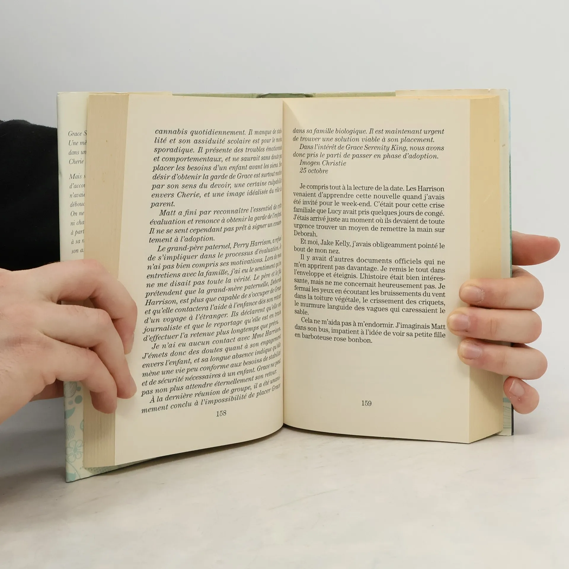 Liens du cœur ou liens du sang... Un excellent roman féminin qui se dévore avec plaisir et renouvelle le genre par des thèmes et une toile de fond intéressants : l'adoption, la vie d'une paroisse dans la campagne anglaise, entrecoupée d'échappées dans la savane au Kenya ou de souvenirs d'une enfance néo-zélandaise... En Angleterre, de nos jours, mais aussi au Kenya et en Nouvelle-Zélande. Pour la petite Grace, la vie commence par une tragédie : la mort de sa très jeune mère dans un accident de voiture alors qu'elle vient tout juste de s'enfuir de la maternité. Qui pour s'occuper d'elle, lui donner la sécurité et l'amour dont elle a besoin ? Pour Leïla et son mari David, pasteur dans une petite ville de campagne, cette nouvelle est inespérée. Trois ans qu'ils ont entamé les démarches d'adoption et qu'ils désespèrent de se voir attribuer un enfant. Oui, mais voilà. Pour Matt, dix-sept ans, le père biologique de Grace, pas question d'abandonner ses droits sur celle qui est sa fille. Qui aura la garde de Grace ? Matt, si jeune mais prêt à tout pour jouer son rôle de père ? Ou Leïla et David pour qui Grace est déjà tout ? Liens du sang ou liens du cœur ? Tout le monde souhaite le bonheur de Grace mais pour une des deux familles, la décision sera terrible...