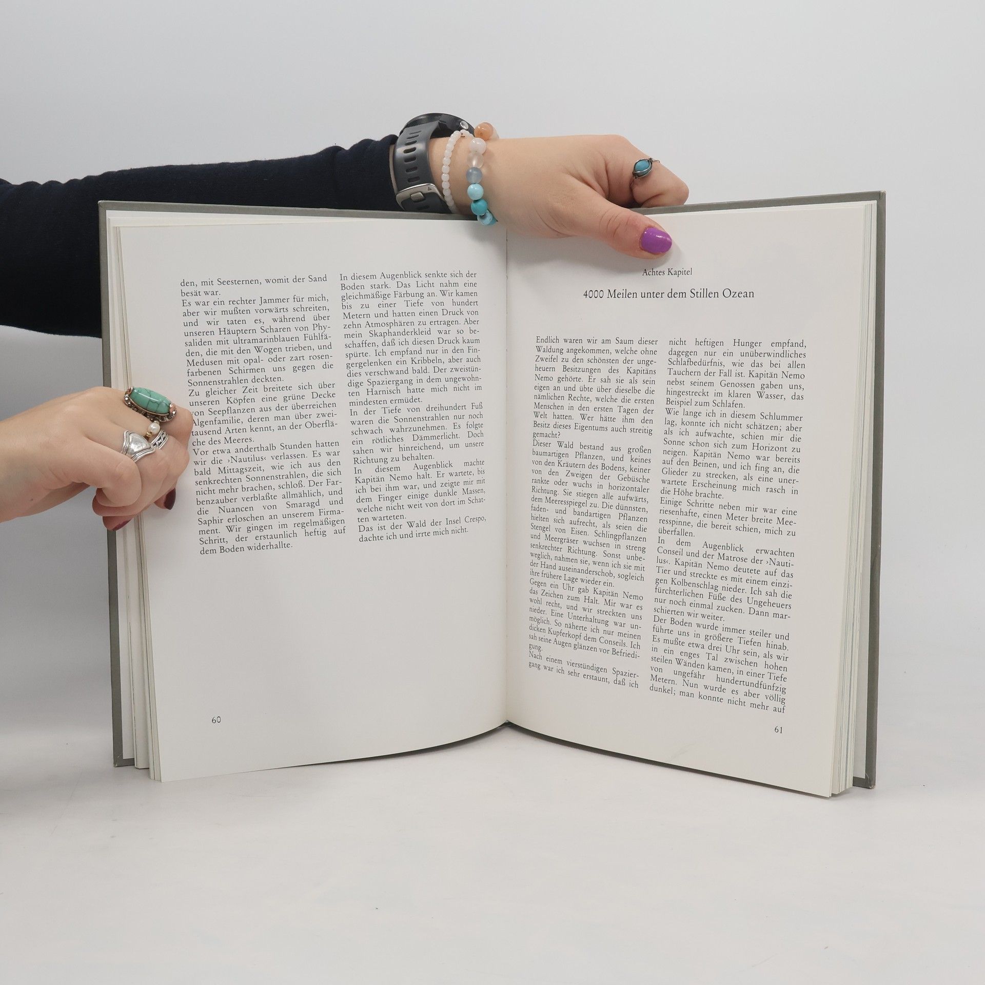 Zu den immer wieder zitierten Meisterwerken von Jules Verne gehört der große Roman über das Riesen-U-Boot Nautilus und die Geschichte von Kapitän Nemo, dem grausamen und geheimnisvollen Rächer, der darin mit einer kleinen Schar Getreuer die Weltmeere befährt. Jules Verne hatte gerade auf einem Kabelleger den Atlantik überquert, als er dieses Buch schrieb. Beispielhaft mischt er darin eine spannende Romanhandlung, wissenswerte Informationen über Ozeanographie, Meeresfauna und -flora mit phantastischen Abenteuern wie dem Kampf mit Riesenkraken, dem Unterqueren der Meerenge von Sues oder der Entdeckung des untergegangenen Atlantis. Hinzu kommt die geniale technische Vision hinsichtlich des Funktionierens eines Unterwasserschiffes, das zudem ungeheuer luxuriös ausgestattet ist. Und schließlich die Schicksalsgeschichte von Kapitän Nemo selbst, eines Menschen rätselhafter Herkunft, eines gebildeten und kultivierten Wissenschaftlers und Ingenieurs, der gleichwohl am Schluß den Untergang eines Kriegsschiffes, das die Nautilus absichtlich gerammt hatte, mit Genuß von seinem Salonfenster aus beobachtet.