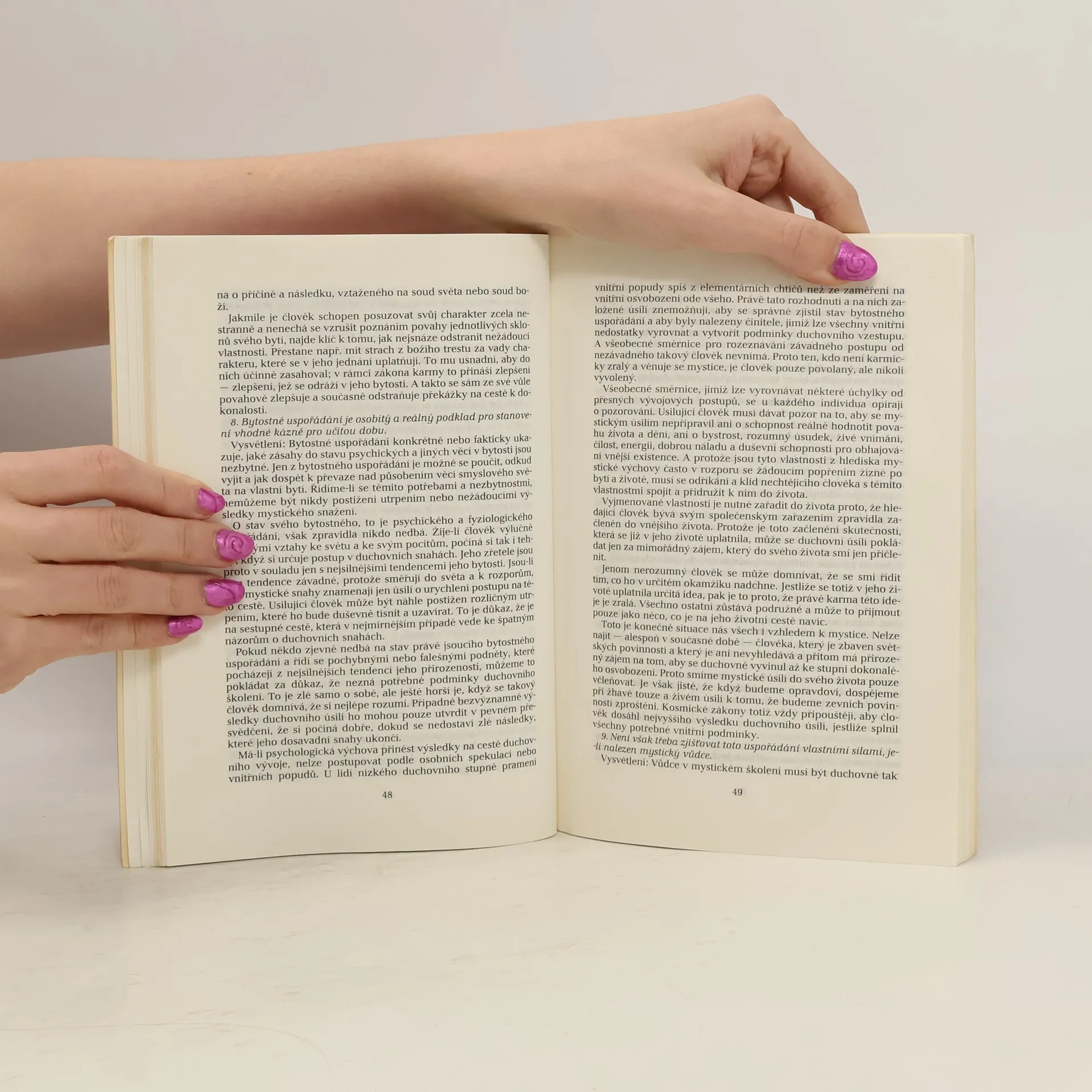 Praktická psychologie nabízí praxí ověřený návod na proměnu psychické bytosti a varuje před nebezpečími, kterým je třeba se vyhnout. Cesta k dokonalosti obsahuje metodické pokyny pro soustavné sebepozorování, sebekontrolu a sebeovládání, které umožňují jednotlivci zasáhnout do psychických automatismů. Kapitoly POUKAZY K PRAXI a O KÁZNI se zaměřují na filozofické základy jógy a popisují postupy pro rozvoj ducha. Další části, jako O SOUSTŘEĎOVÁNÍ, KONEČNÉ POUČKY a PRŮVODNÍ JEVY A VÝSLEDKY DUCHOVNÍHO ÚSILÍ, analyzují tři stupně soustředění a jeho reakce, včetně mystických sil. Závěrečný VSTUP DO MYSTIKY shrnuje všechny poučky do přehledného systému psychických prací. Duchovní dokonalost vyžaduje nekompromisní zřeknutí se světa, což je klíčové pro každého, kdo se chce na tuto cestu vydat. Počáteční úspěchy v soustředění mohou být klamné, neboť skutečná dokonalost leží daleko za těmito dílčími výsledky. Bez ovládání se člověk marně snaží o spokojenost, protože je ovlivňován vnějšími faktory. Teprve když si člověk osvojí vnitřní klid a uspokojení, které pramení z nitra, může skutečně dosáhnout spokojenosti.