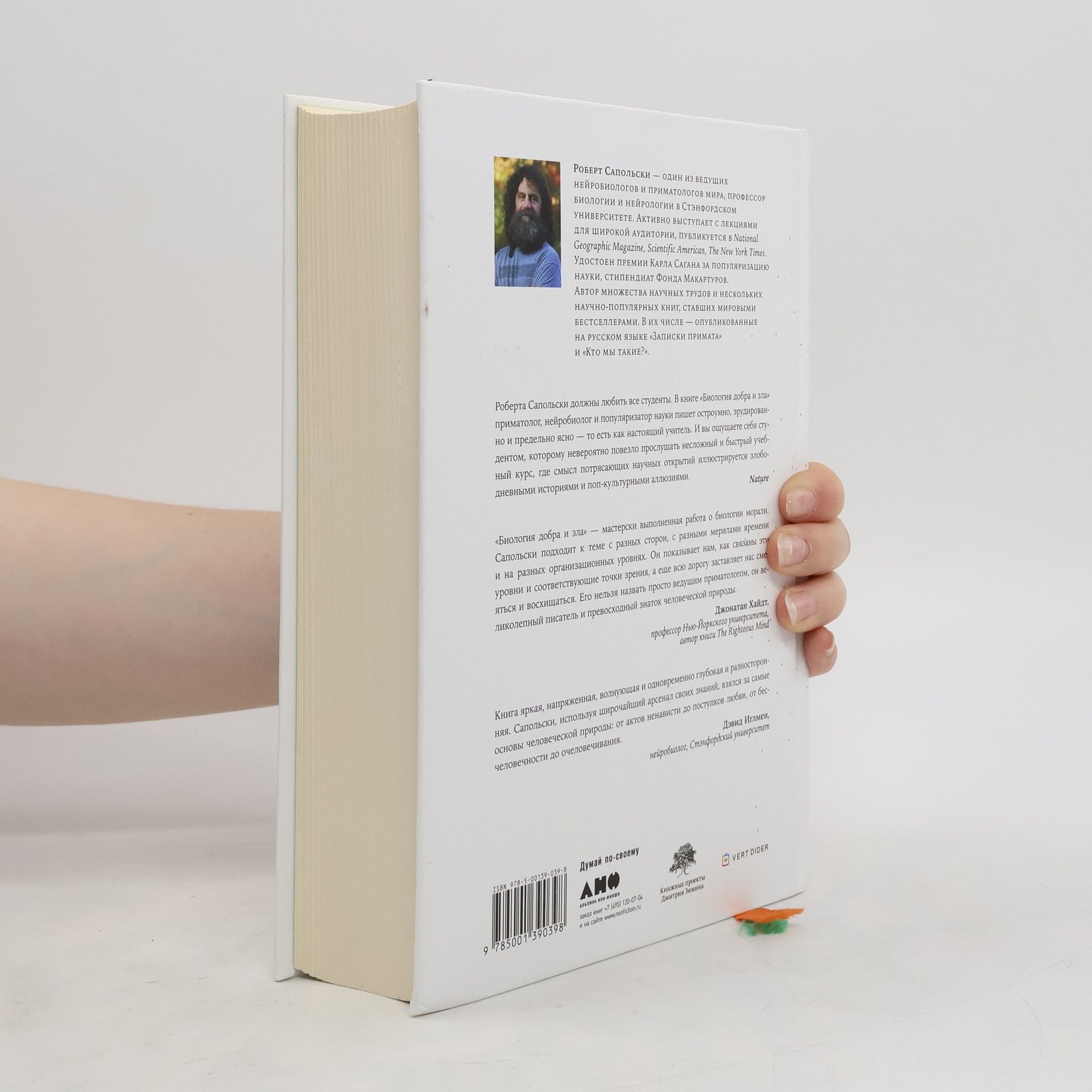 Как говорит знаменитый приматолог и нейробиолог Роберт Сапольски, если вы хотите понять поведение человека и природу хорошего или плохого поступка, вам придется разобраться буквально во всем — и в том, что происходило за секунду до него, и в том, что было миллионы лет назад. В книге автор поэтапно — можно сказать, в хронологическом разрезе — и очень подробно рассматривает огромное количество факторов, влияющих на наше поведение. Как работает наш мозг? За что отвечает миндалина, а за что нам стоит благодарить лобную кору? Что «ненавидит» островок? Почему у лондонских таксистов увеличен гиппокамп? Как связаны длины указательного и безымянного пальцев и количество внутриутробного тестостерона? Чем с точки зрения нейробиологии подростки отличаются от детей и взрослых? Бывают ли «чистые» альтруисты? В чем разница между прощением и примирением? Существует ли свобода воли? Как сложные социальные связи влияют на наше поведение и принятие решений? И это лишь малая часть вопросов, рассматриваемых в масштабной работе известного ученого.