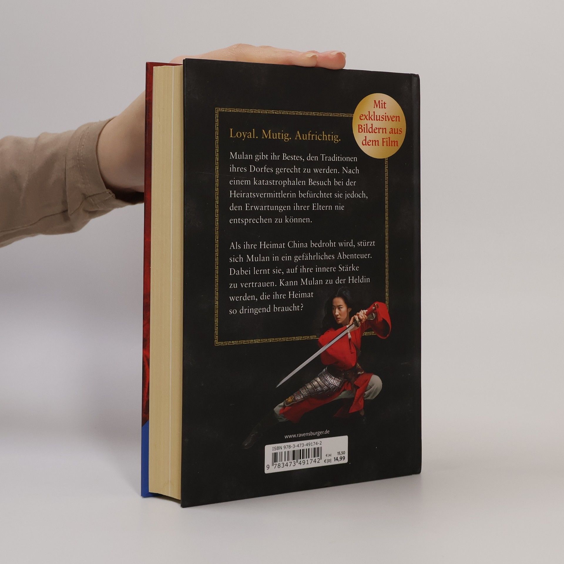 Die aufgeweckte und mutige Mulan ist alles andere als ein gewöhnliches Mädchen. Zu gern würde sie die Welt sehen und Abenteuer erleben, doch dieser Wunsch bleibt ihr im mittelalterlichen China verwehrt. Wie alle anderen Mädchen muss sie sich unterordnen und bei einer Heiratsvermittlerin vorsprechen. Als die Hunnen die Chinesische Mauer stürmen, soll Mulans Vater als Soldat gegen sie kämpfen. Mulan beschließt, ihren Vater zu schützen. Sie verkleidet sich als Mann und macht sich auf ins Trainingslager, wo sie ihre Fähigkeiten unter Beweis stellen muss ... Mulan ist ein aufgewecktes und mutiges Mädchen. Zu gern würde sie die Welt sehen und ein aufregenderes Leben führen, doch wie alle anderen Mädchen muss sie sich unterordnen.Als die Hunnen die Chinesische Mauer stürmen, ordnet der Kaiser an, dass aus jeder Familie ein Mann gestellt werden muss. Mulan hat jedoch keinen Bruder und ihr Vater leidet an einer älteren Kriegsverletzung.Also beschließt Mulan, sich als Mann zu verkleiden und in den Krieg zu ziehen. Im Trainingscamp angekommen, muss sie aber zuerst ihre Fähigkeiten unter Beweis stellen. In diesem Buch steckt die ganze Geschichte mit den besten Bildern aus dem neuen Real-Film!