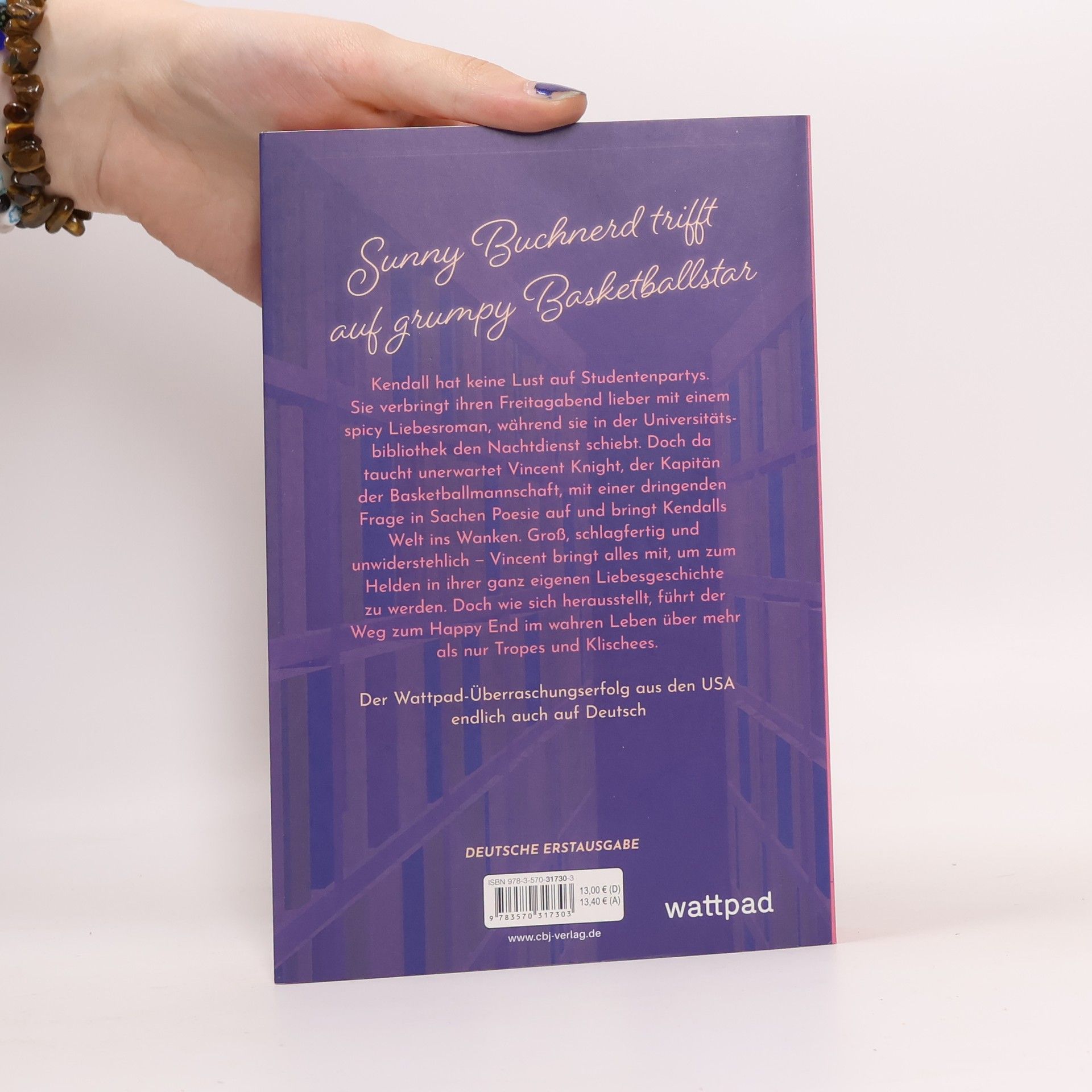 Sunny Buchnerd trifft auf grumpy Basketballstar Kendall hat keine Lust auf Studentenpartys. Sie verbringt ihren Freitagabend lieber mit einem spicy Liebesroman, während sie in der Universitätsbibliothek den Nachtdienst schmeißt. Doch als unerwartet Vincent Knight, der Kapitän der Basketballmannschaft und wandelnder Herzschmerzmagnet, mit verletztem Handgelenk, schlechter Laune und einer dringenden Frage in Sachen Poesie auftaucht, gerät ihre Welt ins Wanken. Groß, schlagfertig und unwiderstehlich – Vincent bringt alles mit, um zum Helden in Kendalls ganz eigener Liebesgeschichte zu werden. Doch wie sich herausstellt führt der Weg zum Happy End im wahren Leben über mehr als nur Tropes und Klischees. Der Wattpad-Überraschungserfolg aus den USA endlich auch auf Deutsch