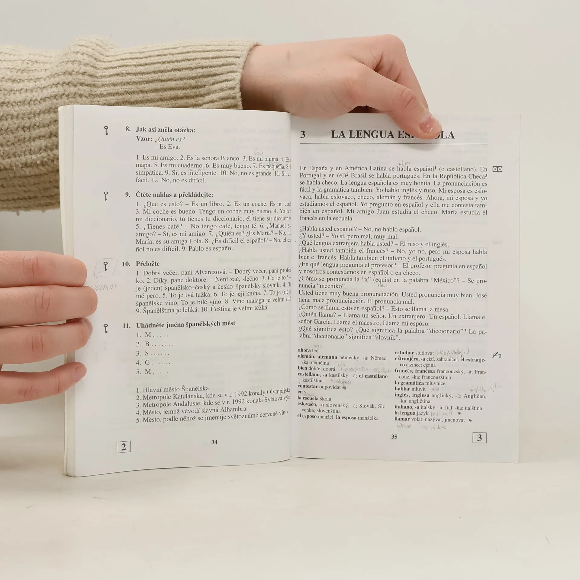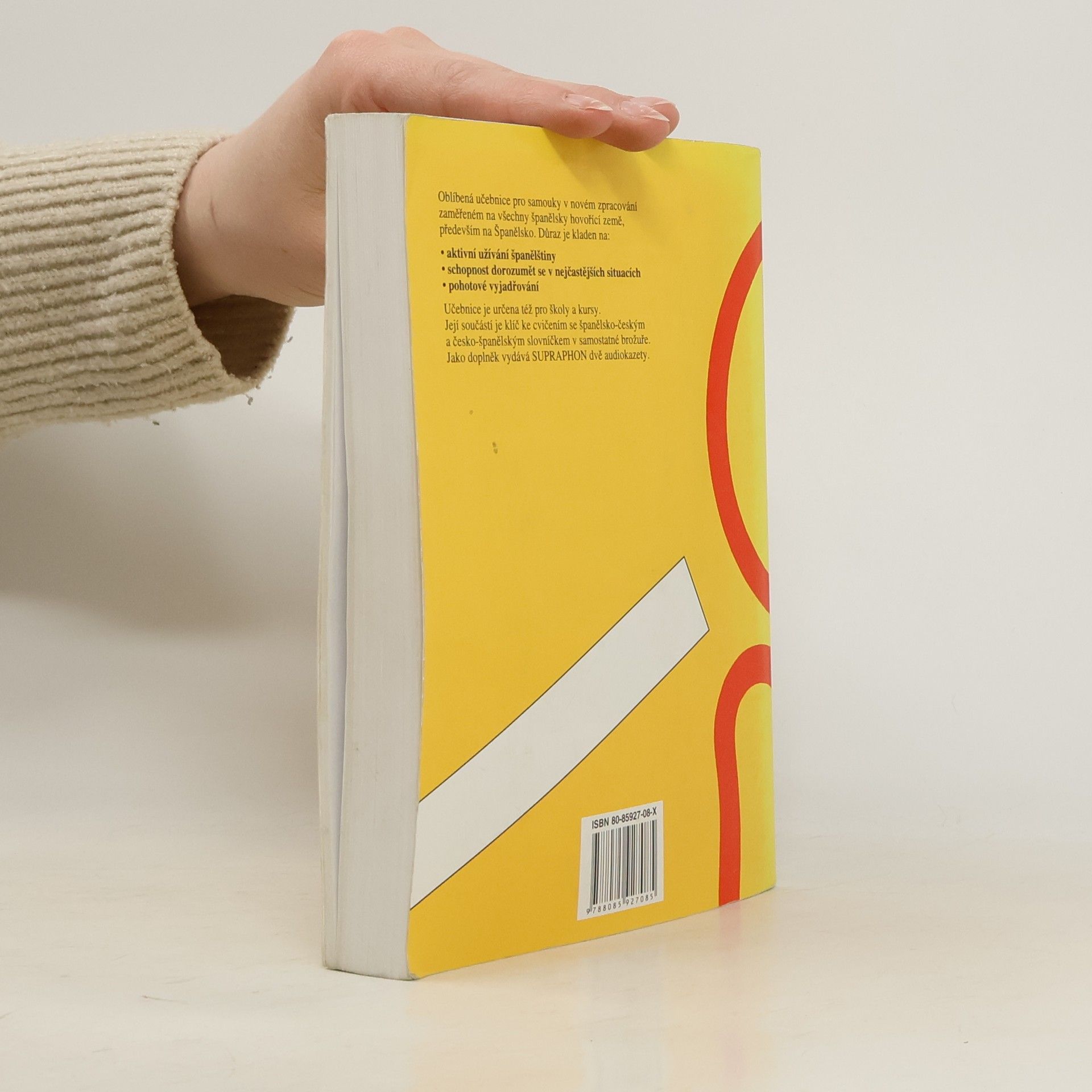 Oblíbená učebnice pro samouky v novém zpracování zaměřené na všechny španělsky hovořící země, především na Španělsko. Důraz je kladen na: . aktivní užívání španělštiny . schopnost dorozumět se v nejčastějších situacích . pohotové vyjadřování Učebnice je určena též pro školy a kursy. Její součástí je brožura obsahující klíč ke cvičením (119 s.) se španělsko-českým a česko-španělským slovníčkem. Jako samostatný doplněk k učebnici vydává Supraphon audionahrávku.