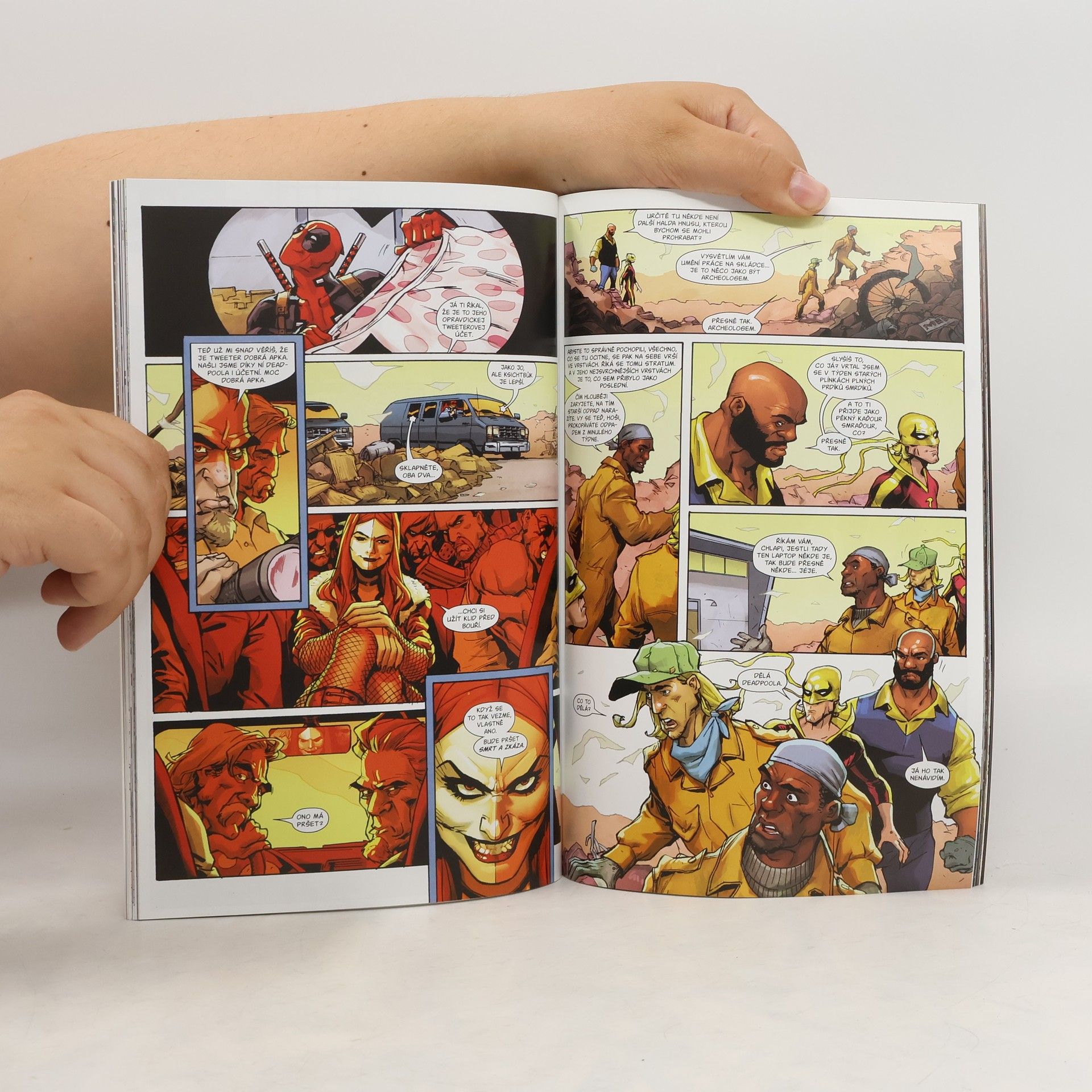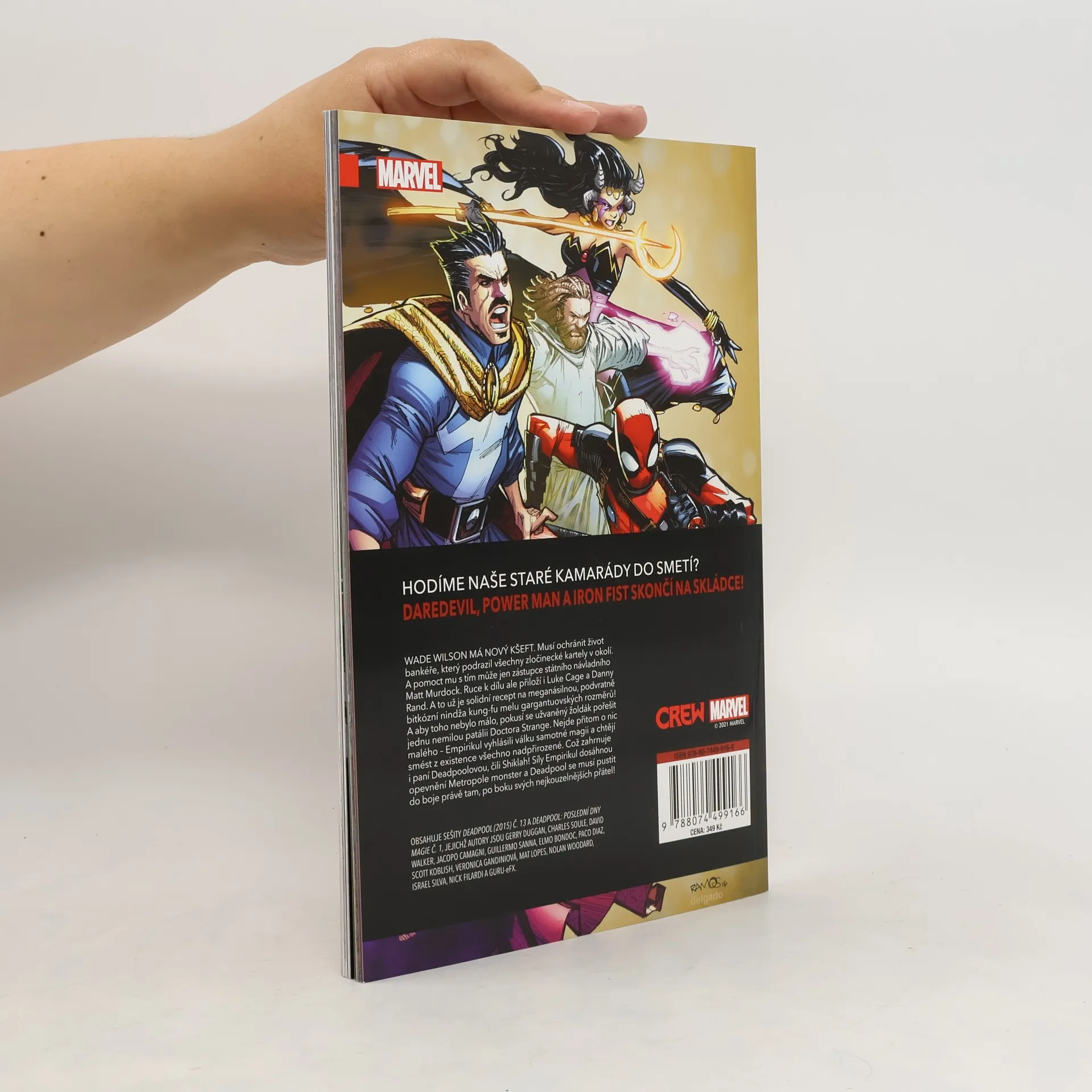 Hodíme naše staré kamarády do smetí? Daredevil, Power Man a Iron Fist skončí na skládce! Wade Wilson má nový kšeft. Musí ochránit život bankéře, který podrazil všechny zločinecké kartely v okolí. A pomoct mu s tím může jen zástupce státního návladního Matt Murdock. Ruce k dílu ale přiloží i Luke Cage a Danny Rand. A to už je solidní recept na meganásilnou, podvratně bitkózní ninja kung-fu melu gargantuovských rozměrů! A aby toho nebylo málo, pokusí se užvaněný žoldák pořešit jednu nemilou patálii Doctora Strange. Nejde přitom o nic malého – Empirikul vyhlásili válku samotné magii a chtějí smést z existence všechno nadpřirozené. Což zahrnuje i paní Deadpoolovou, čili Shiklah! Síly Empirikulu dosáhnou opevnění Metropole monster a Deadpool se musí pustit do boje právě tam, po boku svých nejkouzelnějších přátel! Obsahuje sešity Deadpool (2015) č. 13 a Deadpool: Poslední dny magie č. 1, jejichž autory jsou Gerry Duggan, Charles Soule, David Walker, Jacopo Camagni, Guillermo Sanna, Elmo Bondoc, Paco Diaz, Scott Koblish, Veronica Gandini, Mat Lopes, Nolan Woodaard, Israel Silva, Nick Filardi a Guru-eFX.