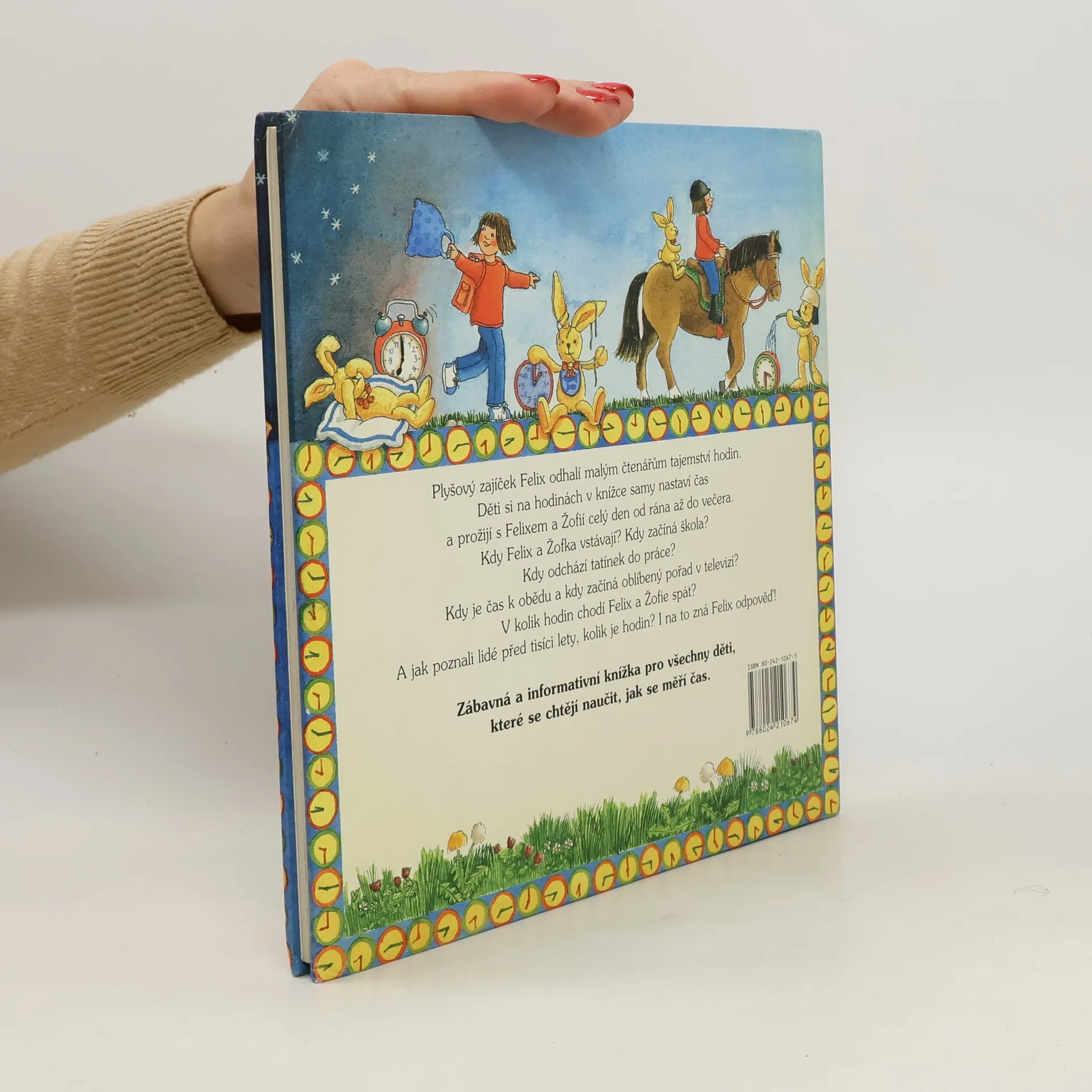 Knížka s hodinami s pohyblivými ručičkami. V druhé knížce zajíc Felix zasvětí malé čtenáře do tajemství času a hodin. Děti se dozvědí, kdo začal prvně v historii lidstva měřit čas, jak vypadaly sluneční nebo vodní hodiny a jaké hodiny používáme dnes. Prožijí s Felixem a jeho kamarádkou Žofkou celý den a zjistí, kdy chodí Žofka do školy, kdy obědvá, jak se baví odpoledne a kdy chodí s Felixem spát. V knize najdeme kromě veselých obrázků ciferník s pohyblivými ručičkami, na nichž si děti mohou nastavit čas. Tištěno na tvrdých kartonových listech s průřezem na plastický obrázek.