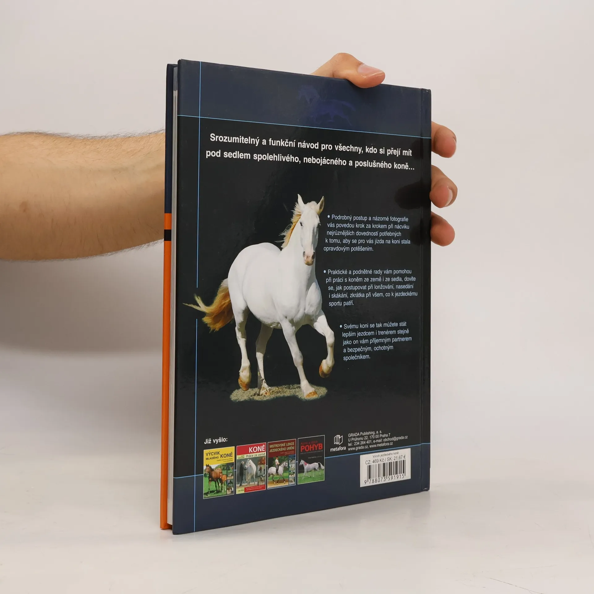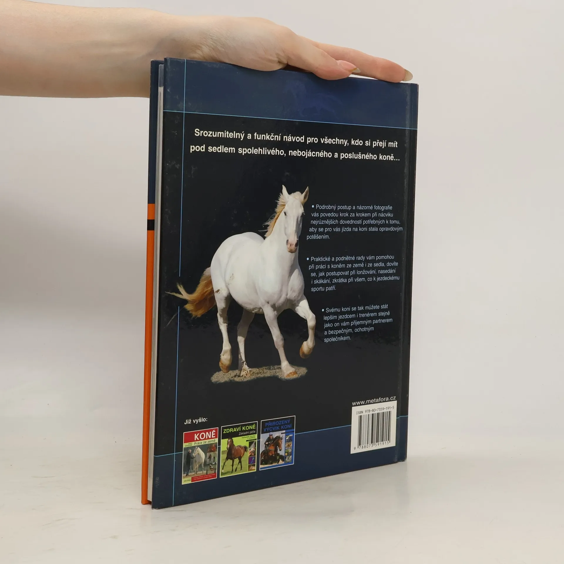 Vychovejte si ze svého koně dokonalého, spolehlivého partnera… Srozumitelný a funkční návod pro všechny, kdo si přejí mít pod sedlem spolehlivého, nebojácného a poslušného koně… Podrobný postup a názorné fotografie vás povedou krok za krokem při nácviku nejrůznějších dovedností potřebných k tomu, aby se pro vás jízda na koni stala opravdovým potěšením. Praktické a podnětné rady vám pomohou při práci s koněm ze země i ze sedla, dovíte se, jak postupovat při lonžování, nasedání i skákání, zkrátka při všem, co k jezdeckému sportu patří. Svému koni se tak můžete stát lepším jezdcem i trenérem stejně jako on vám příjemným partnerem a bezpečným, ochotným společníkem.