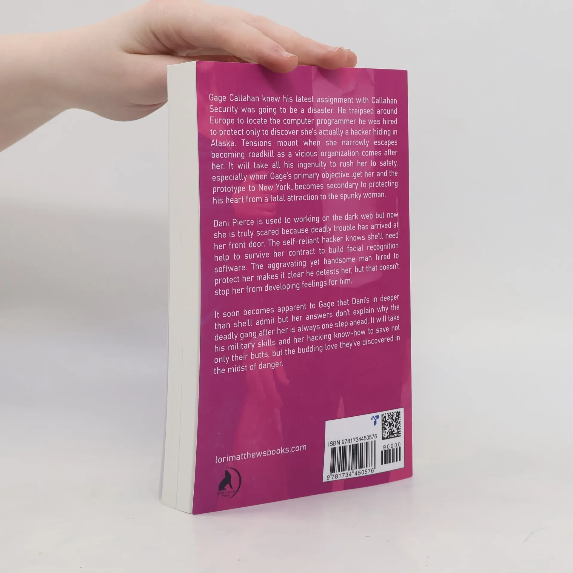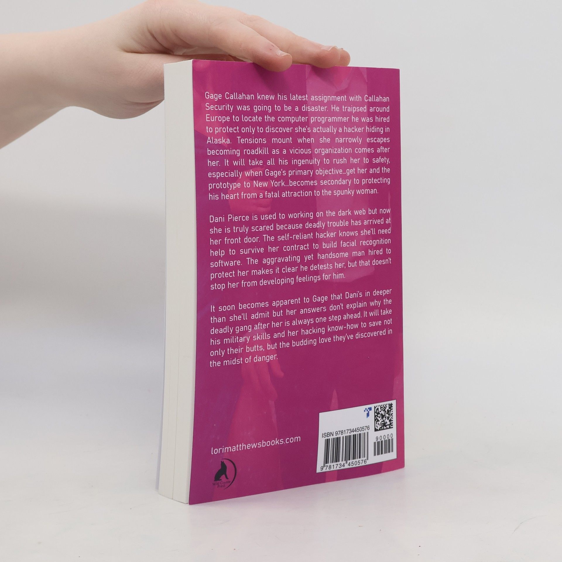 Gage Callahan knew his latest assignment with Callahan Security was going to be a disaster. He traipsed around Europe to locate the computer programmer he was hired to protect only to discover she's actually a hacker hiding in Alaska. Tensions mount when she narrowly escapes becoming roadkill as a vicious organization comes after her. It will take all his ingenuity to rush her to safety, especially when Gage's primary objective...get her and the prototype to New York...becomes secondary to protecting his heart from a fatal attraction to the spunky woman. Dani Pierce is used to working on the dark web but now she is truly scared because deadly trouble has arrived at her front door. The self-reliant hacker knows she'll need help to survive her contract to build facial recognition software. The aggravating yet handsome man hired to protect her makes it clear he detests her, but that doesn't stop her from developing feelings for him. It soon becomes apparent to Gage that Dani's in deeper than she'll admit but her answers don't explain why the deadly gang after her is always one step ahead. It will take his military skills and her hacking know-how to save not only their butts, but the budding love they've discovered in the midst of danger.