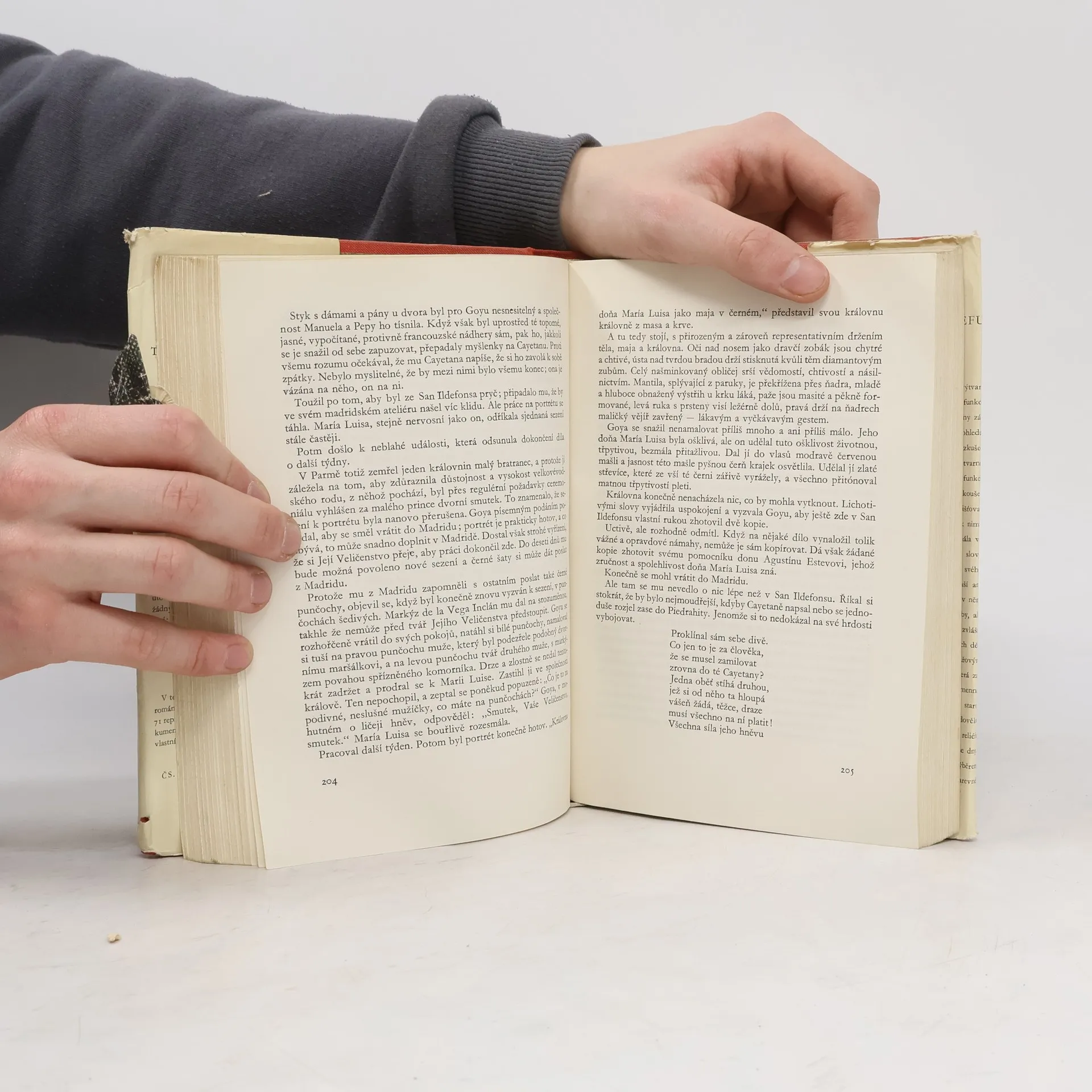 Román - k pokračování se již německý spisovatel nedostal - o životních osudech a tvůrčích zápasech předního španělského malíře zachycuje zhruba léta 1793-1806, dobu rozkvětu Goyových tvůrčích sil. Autor se neomezuje jen na postavu umělcovu, nýbrž sleduje v širokých záběrech životve všech společenských vrstvách tehdejšího Španělska. Výjevy ze života venkovského i městského lidu se střídají s líčením rozmařilého prostředí královského dvora a s otřesnými scénami řádění španělské inkvizice. Kniha obsahuje 71 reprodukcí