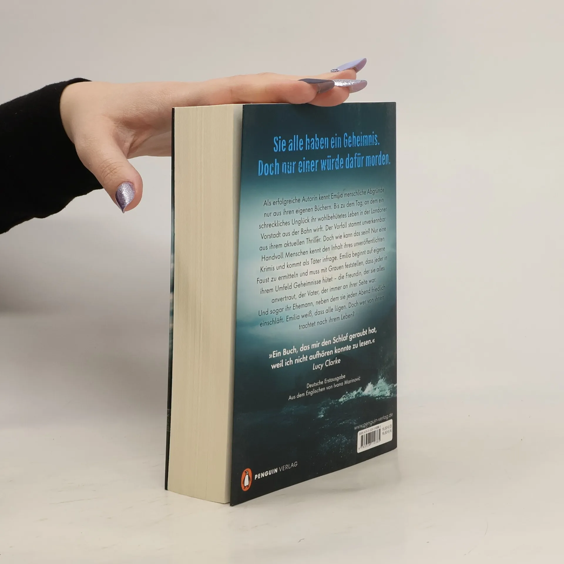 Sie alle haben ein Geheimnis. Doch nur einer würde dafür morden. Als erfolgreiche Autorin kennt Emilia menschliche Abgründe nur aus ihren eigenen Büchern. Bis zu dem Tag, an dem ein schreckliches Unglück ihr wohlbehütetes Leben in der Londoner Vorstadt aus der Bahn wirft. Der Vorfall stammt unverkennbar aus ihrem aktuellen Thriller. Doch wie kann das sein? Nur eine Handvoll Menschen kennt den Inhalt ihres unveröffentlichten Krimis und kommt als Täter infrage. Emilia beginnt auf eigene Faust zu ermitteln und muss mit Grauen feststellen, dass jeder in ihrem Umfeld Geheimnisse hütet – die Freundin, der sie alles anvertraut, der Vater, der immer an ihrer Seite war. Und sogar ihr Ehemann, neben dem sie jeden Abend friedlich einschläft. Emilia weiß, dass alle lügen. Doch wer von ihnen trachtet nach ihrem Leben? Englands Thriller-Königin Claire Douglas ist zurück. Nach den Nummer-1-SPIEGEL-Bestsellern Beste Freundin und Girls Night nun ihr neuestes Meisterwerk. Unfassbar atmosphärisch, unvergleichlich spannend – unerwartete Wendungen und Twists bis zur allerletzten Seite.