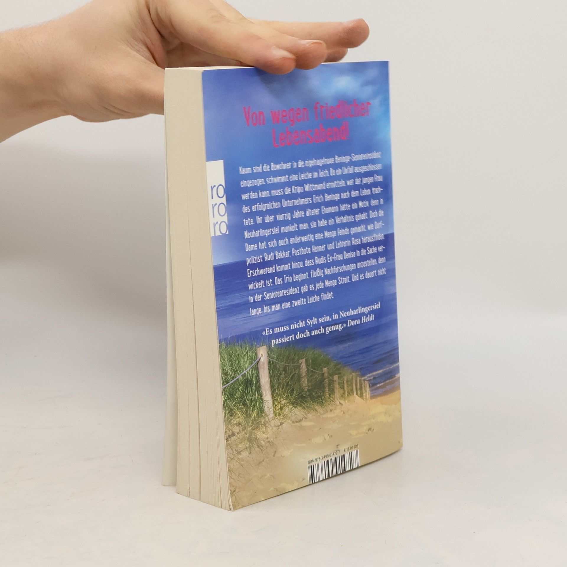 Von wegen friedlicher Lebensabend! Kaum sind die Bewohner in die nigelnagelneue Beninga-Seniorenresidenz eingezogen, schwimmt eine Leiche im Teich. Da ein Unfall ausgeschlossen werden kann, muss die Kripo Wittmund ermitteln, wer der jungen Frau des erfolgreichen Unternehmers Erich Beninga nach dem Leben trachtete. Ihr über vierzig Jahre älterer Ehemann hätte ein Motiv, denn in Neuharlingersiel munkelt man, sie habe ein Verhältnis gehabt. Doch die Dame hat sich auch anderweitig eine Menge Feinde gemacht, wie Dorfpolizist Rudi Bakker, Postbote Henner und Lehrerin Rosa herausfinden. Erschwerend kommt hinzu, dass Rudis Ex-Frau Denise in die Sache verwickelt ist. Das Trio beginnt, fleißig Nachforschungen anzustellen, denn in der Seniorenresidenz gab es jede Menge Streit. Und es dauert nicht lange, bis man eine zweite Leiche findet. «Es muss nicht Sylt sein, in Neuharlingersiel passiert doch auch genug.» Dora Heldt