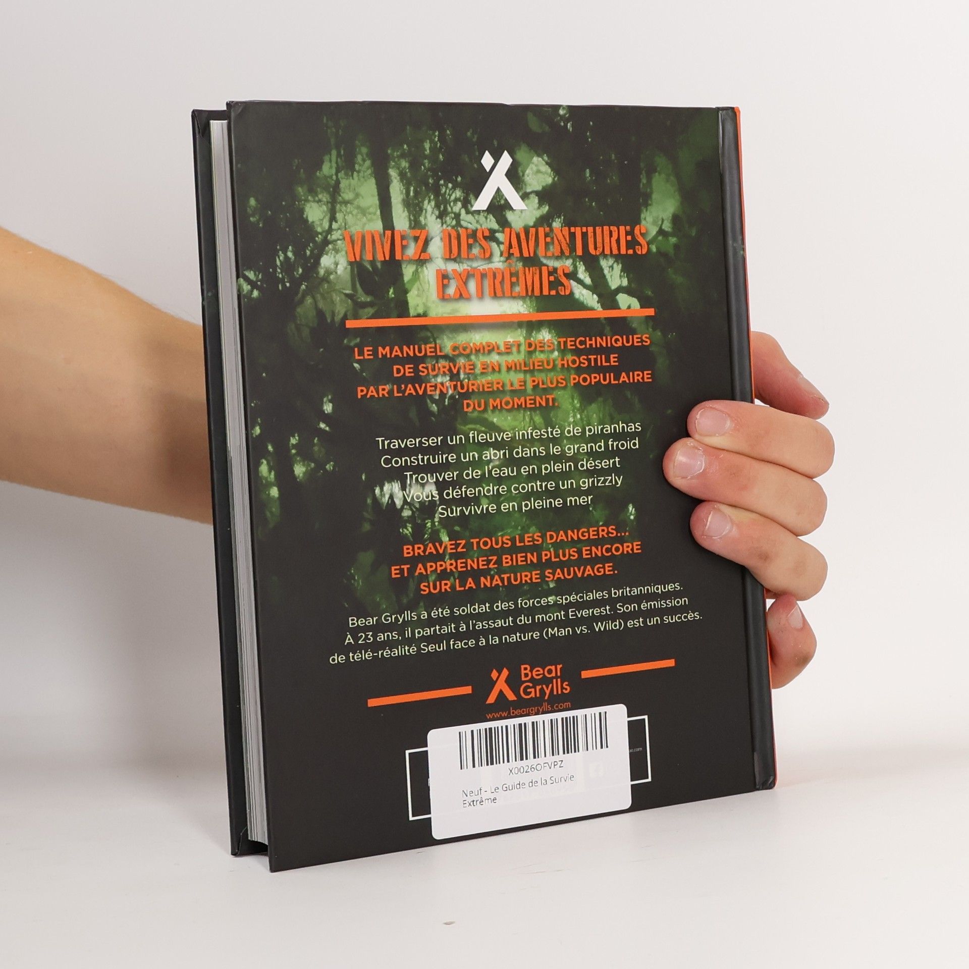 Le manuel complet des techniques de survie en milieu hostile par l'aventurier le plus populaire du moment.Traverser un fleuve infesté de piranhas, construire un abri dans le grand froid, trouver de l'eau en plein désert, vous défendre contre un grizzly, survivre en pleine mer…Bravez tous les dangers... et apprenez bien plus encore sur la nature sauvage.Bear Grylls a été soldat des forces spéciales britanniques. A 23 ans, il partait à l'assaut du mont Everest. Son émission de télé-réalité Seul face à la nature (Man vs. Wild) est un succès.