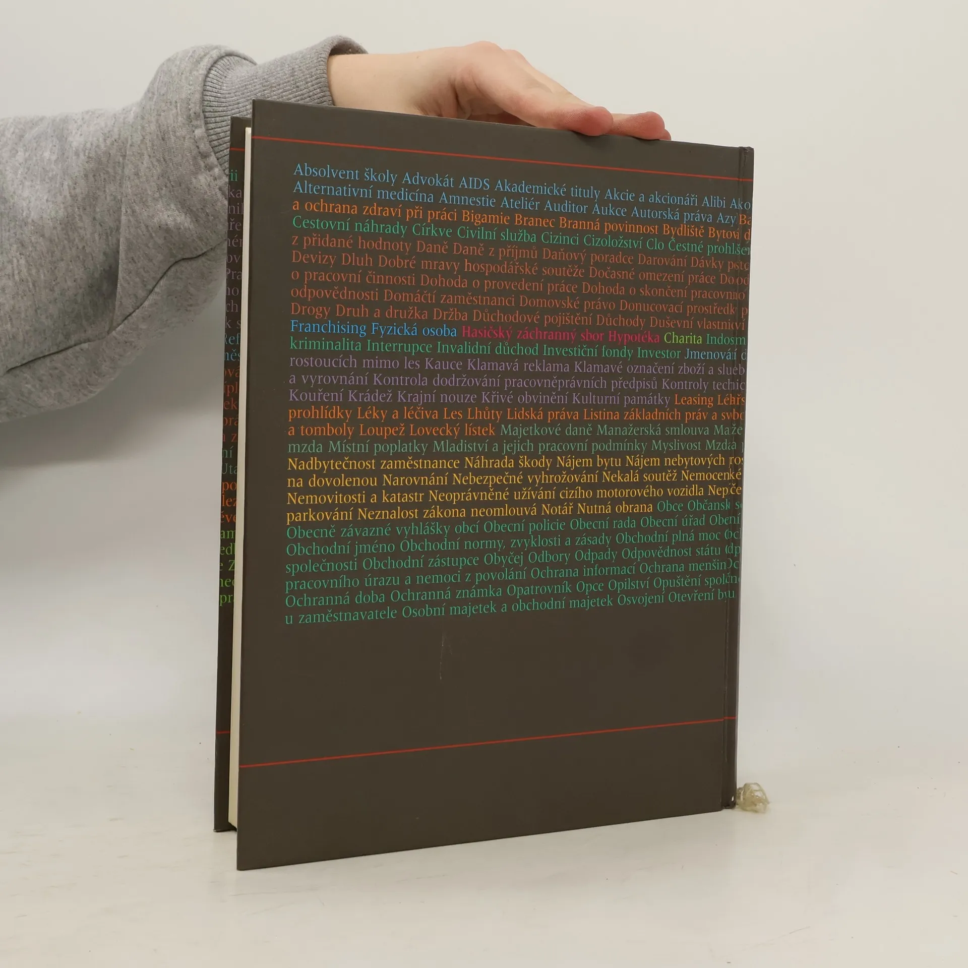Průvodce bludištěm českých zákonů. Abecedně seřazená hesla v podrobném, leč srozumitelném právnickém objasnění od např. hesla advokát, přes auditor, cestovní náklady, clo, bydliště, DPH, daně, zaměstnání a paragrafy, praconí dohody, fondy, investor, leasing, listina základních práv, lidská práva, poplatky, manažerská smlouva, mzda, náhrada škody, nájem, notář, motorové vozidlo a právo, vyhlášky, policie, úřady obecní správy, obchdoní normy, plná moc, ochrana informací, opatrovník, opce, atd
