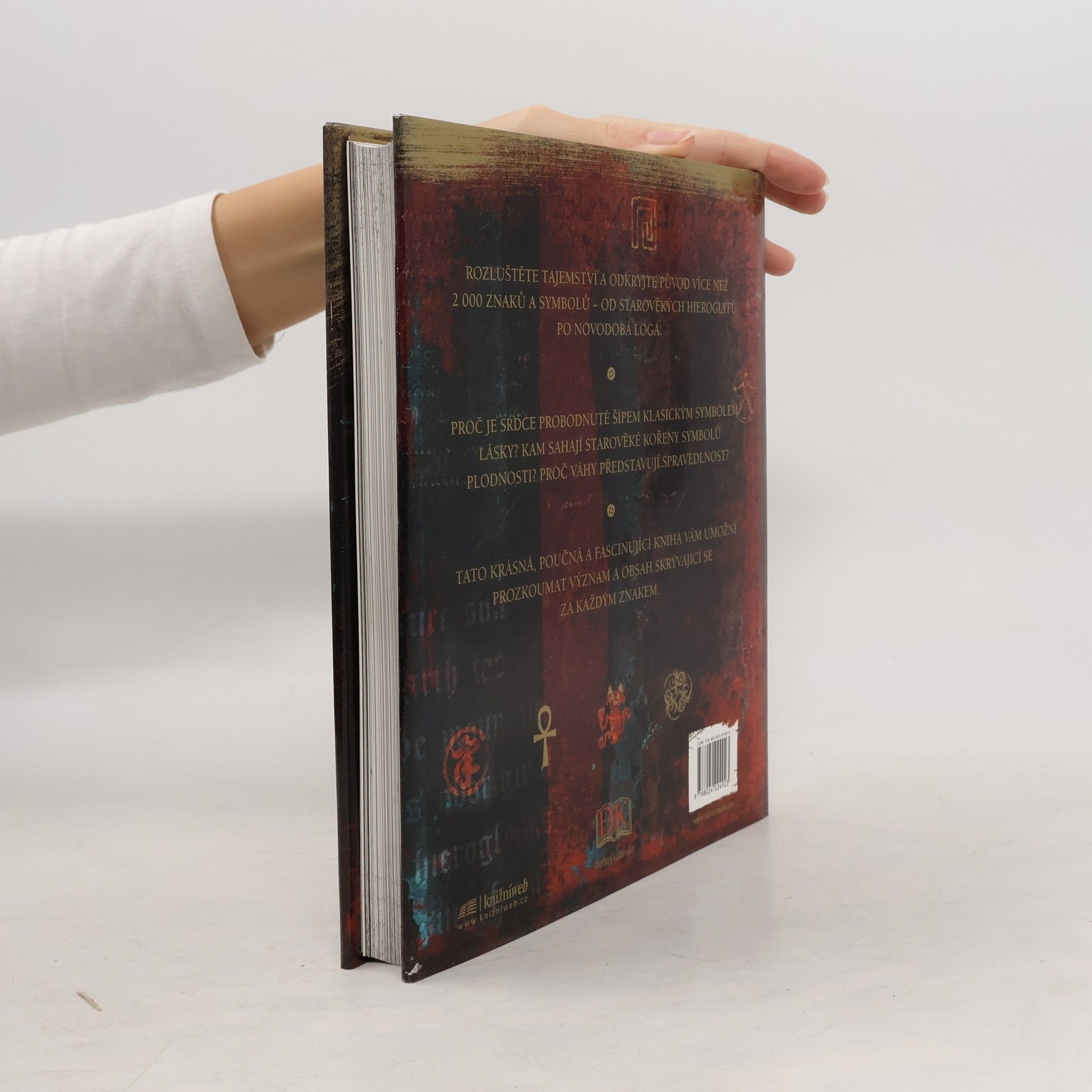 Encyklopedie popisuje a vysvětluje přes 2 000 znaků a symbolů. Od jednoduchých tvarů a barev po božstva, mytická zvířata či moderní loga a mezinárodní symboly. Tematicky uspořádaná kniha s mnoha křížovými odkazy představuje jedinečného průvodce světem vizuálních značek.