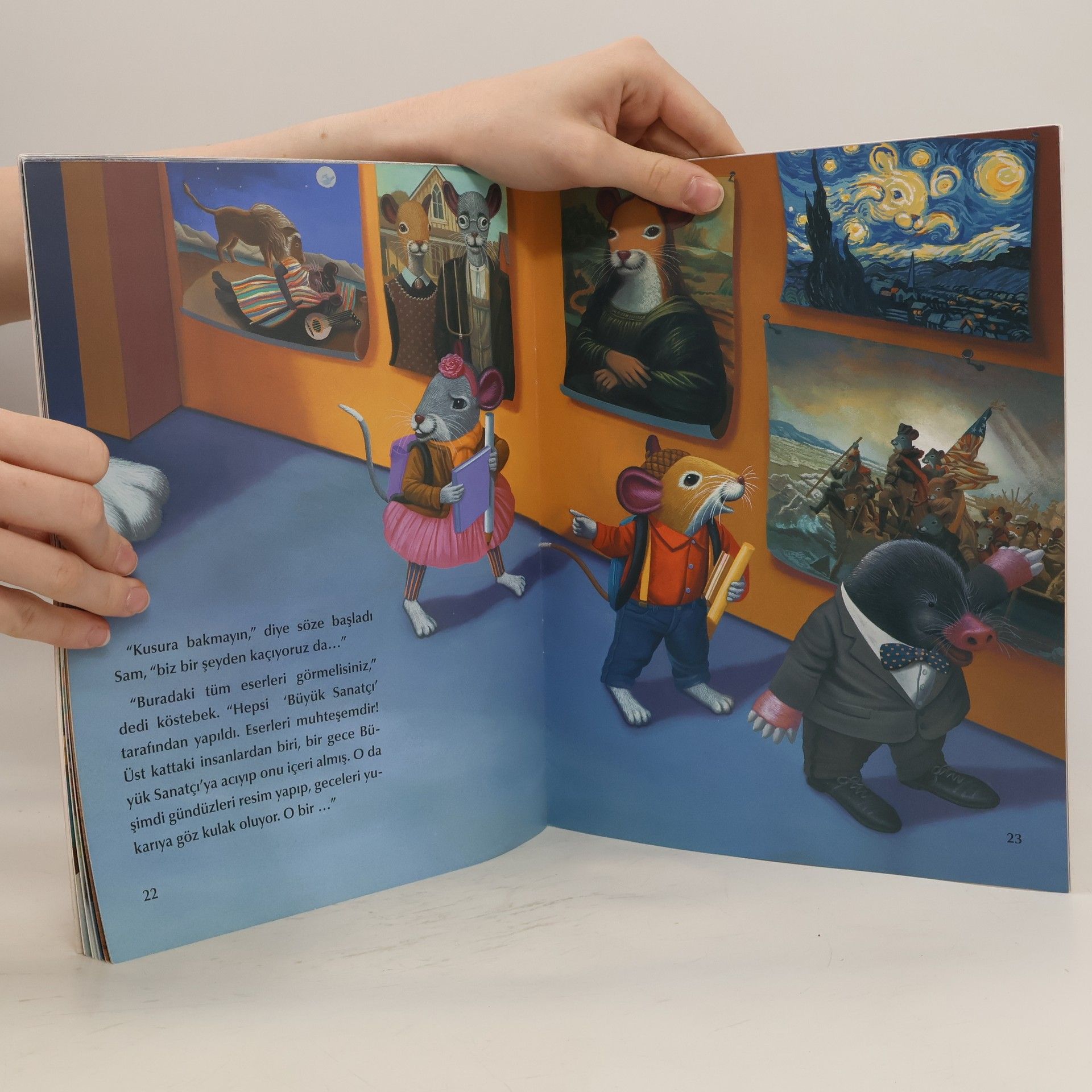 Simdiye dek kutuphanenin disina bir kez bile cikmayan kutuphane faresi Sam, macera duskunu Sarah sayesinde yeni yeni deneyimlere yelken aciyor. Kutuphanenin minik sakinleri, bu kez kutuphaneden ayrilip essiz sanat eserleri ve tarihi kalintilarla dolu bir muzeyi ziyaret ediyorlar! Muzedeki eserlerin guzelligiyle buyulenen Sam ve Sarah'yi gezinin sonunda buyuk bir surpriz de bekliyor! (Tanitim Bulteninden)Sayfa Sayisi: 32Baski Yili: 2014Dili: TurkceYayinevi: Final Kultur Sanat Yayinlari
