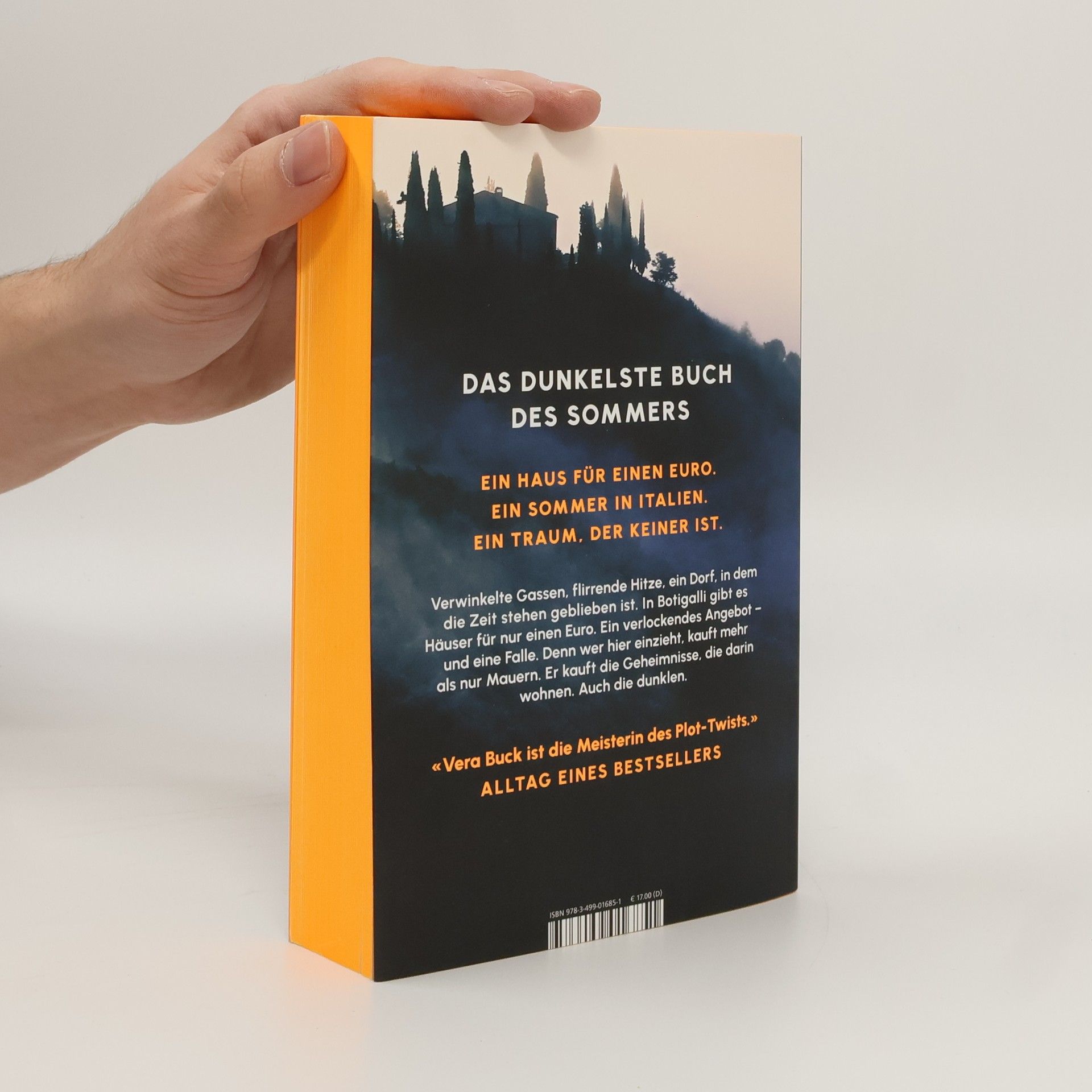 Ein Haus in einem alten Geisterdorf in Italien, ein Traum, der zum Albtraum wird ... Der nervenaufreibende neue Pageturner von Vera Buck, in limitierter Erstauflage mit Farbschnitt Ein Haus in Italien für einen Euro: Für die deutsche Architektin Tilda ist die verfallene Villa auf Sardinien ein Glücksgriff. Sie will alle Brücken hinter sich abbrechen und stürzt sich in die Renovierung. Doch die vermeintliche Idylle des verwinkelten Ortes trügt. Ist das Geisterdorf wirklich so verlassen, wie es den Anschein hat? Sonntags läuten die Glocken, und Unbekannte behaupten, ein Fluch liege auf Tildas Haus. Zusammen mit dem Journalisten Enzo, der die Geschichte des Dorfes erforscht, versucht Tilda herauszufinden, was hier geschehen ist. Doch der einzige Bewohner, der mehr weiß, ist der alte Silvio. Und der schweigt beharrlich. Als plötzlich Tildas jüngerer Bruder Nino vor ihrer Tür steht, lässt Tilda ihn zähneknirschend bei sich unterkommen. Er bringt Erinnerungen mit, die sie dringend vergessen will. Dann verschwindet Nino auf mysteriöse Weise. Getrieben von der verzweifelten Suche nach ihm offenbart sich Tilda und Enzo im schroffen Hinterland der Insel eine Wahrheit, die düsterer ist als jede Geistergeschichte – und die eng mit Tildas eigener Vergangenheit verwoben scheint.