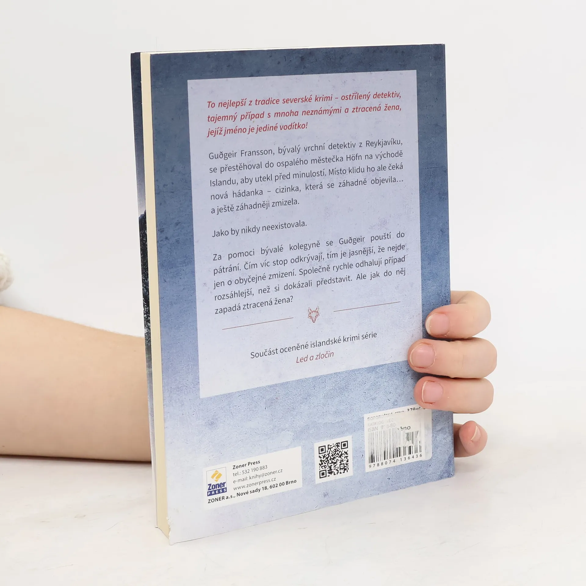 Mrazivý islandský thriller, který spojuje to nejlepší z tradice severských krimi – drsnou krajinu, tajemný případ a rozervaného, ostříleného detektiva! Bývalý reykjavícký detektiv Guðgeir Fransson prchá na východ Islandu do ospalého městečka Höfn, kde pracuje jako noční hlídač. Po tragické smrti kolegy se jeho kariéra i život rozpadly a on si v malém městečku uprostřed divočiny pokouší dát život znovu dohromady. Když se v uzavřené komunitě na maloměstě uprostřed ledové zimy objeví tajemná cizinka, a pak beze stopy zmizí, Guðgeirovy detektivní instinkty, které třicet let cvičil, se rozechvějí. Jak se tady objevila a proč si ji nikdo nevybavuje? S pomocí bývalé kolegyně z Reykjavíku se pouští do vyšetřování, které ho vtahuje do záhady rozsáhlejší, než si dokázal představit. Nejasný případ se rozrůstá a zmizení neznámé se v něm brzy jeví jako kapka v moři. Ale Guðgeir nepolevuje. Je odhodlaný záhadnou ženu najít, případ vyřešit a získat tak zpět jak policejní kariéru, tak svou rodinu. Liška je součástí úspěšné islandské krimi série Led a zločin, za kterou autorka získala ocenění za nejlepší islandský krimi román!