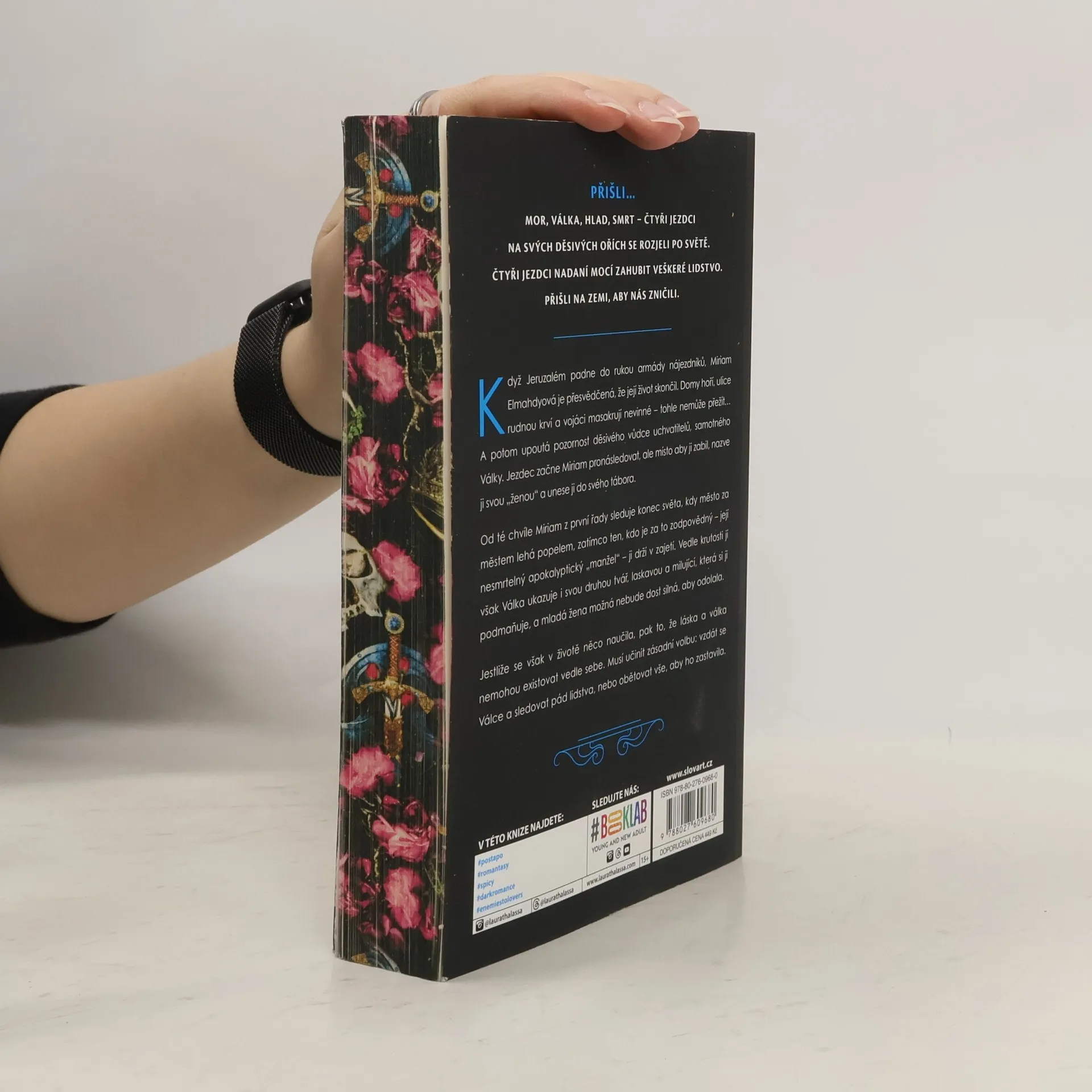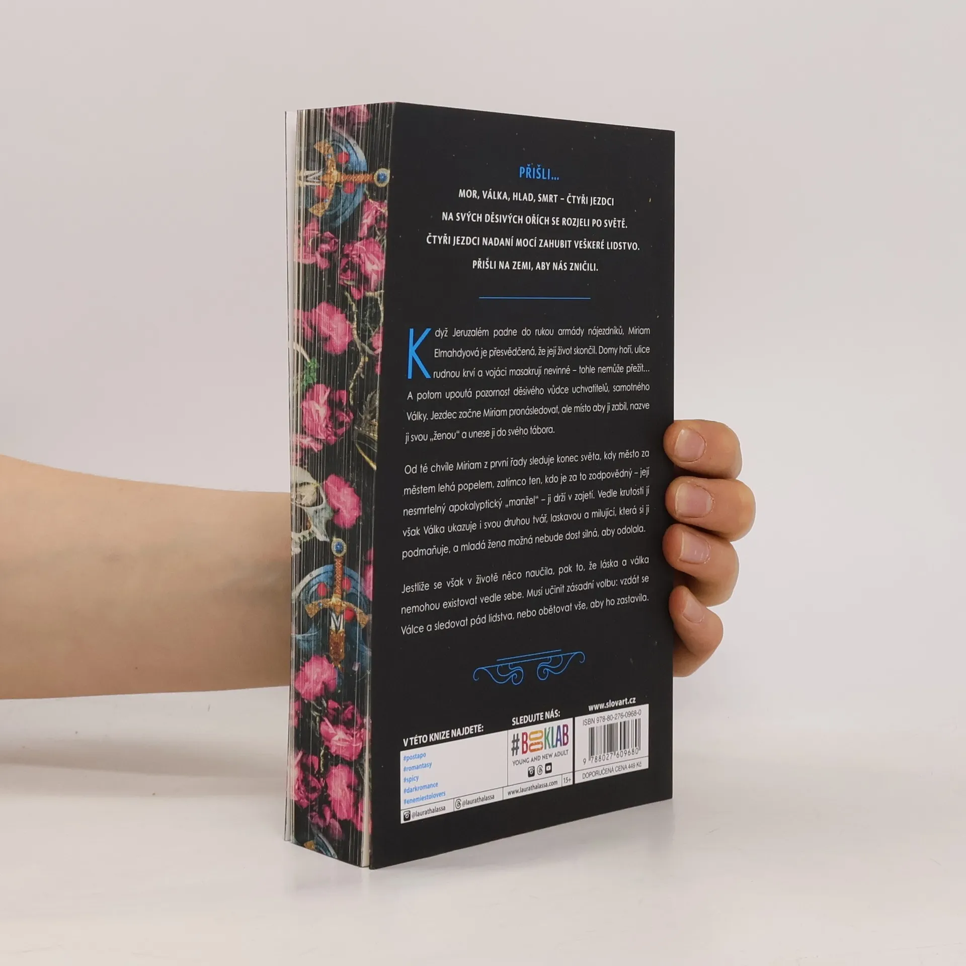 Přišli na zemi - Mor, Válka, Hlad a Smrt - čtyři Jezdci apokalypsy, kteří se na svých hrůzostrašných ořích rozjeli po světě nadáni mocí zahubit veškeré lidstvo. Když Jeruzalém padne do rukou armády nájezdníků, Miriam Elmahdyová je přesvědčená, že její život skončil. Domy hoří, ulice rudnou krví a vojáci masakrují nevinné - tohle nemůže přežít… A potom upoutá pozornost děsivého vůdce uchvatitelů, samotného Války. Jezdec se vydá Miriam pronásledovat, ale místo aby ji zabil, nazve ji svou „manželkou" a unese ji do svého tábora. Od té chvíle mladá žena z první řady sleduje konec světa, kdy město za městem lehá popelem, zatímco ten, kdo je za to zodpovědný - její nesmrtelný apokalyptický „manžel" - ji drží v zajetí. Vedle krutosti jí však Válka ukazuje i svou druhou tvář, laskavou a milující, která si ji podmaňuje, a Miriam možná nebude dost silná, aby odolala. Jestliže se však v životě něco naučila, pak to, že láska a válka nemohou existovat vedle sebe. Musí učinit zásadní volbu: vzdát se Válce a sledovat pád lidstva, nebo obětovat vše, aby ho zastavila.