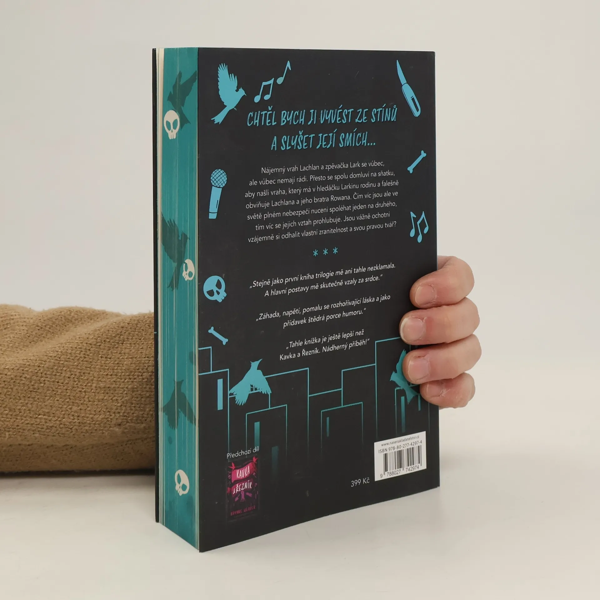 Nájemný vrah Lachlan Kane touží po klidném životě ve své kožedělné dílně a chce zapomenout na traumata z minulosti. Když ale zpacká zakázku pro nejvýznamnějšího klienta svého šéfa, uvědomí si, že se z podsvětí nikdy nedostane. Alespoň dokud mu zpěvačka Lark Montagueová nenabídne dohodu: pomůže jí najít vraha a ona mu zajistí svobodu. Má to ale jeden háček. Nejdřív si ji musí vzít. A druhý háček: Ti dva se nesnáší. Indie zpěvačka a skladatelka Lark je jako paprsek slunce, který přemůže každý mrak a pronikne do každé skulinky, kterou se Lachlan Kane snaží skrýt. Lachlan, svérázný starší bratr spřízněné duše její nejlepší kamarádky, ji považuje za privilegovanou princeznu, ale Lark skrývá ve stínu svého jasného světla nejedno tajemství. Protože její rodina je v troskách a štěstí nejlepší kamarádky visí na vlásku, je ochotná složit slib muži, kterého je odhodlaná nenávidět, bez ohledu na to, jak přitažlivý ten zamlklý zabiják může být. Jak Lachlan a Lark společně procházejí temným světem, je čím dál obtížnější rozeznat, co je v jejich manželství falešné a co skutečné. Ale nepronásledují je jen nebezpečí, jež si dobře uvědomují. Číhá na ně taky přízrak, který touží po pomstě.