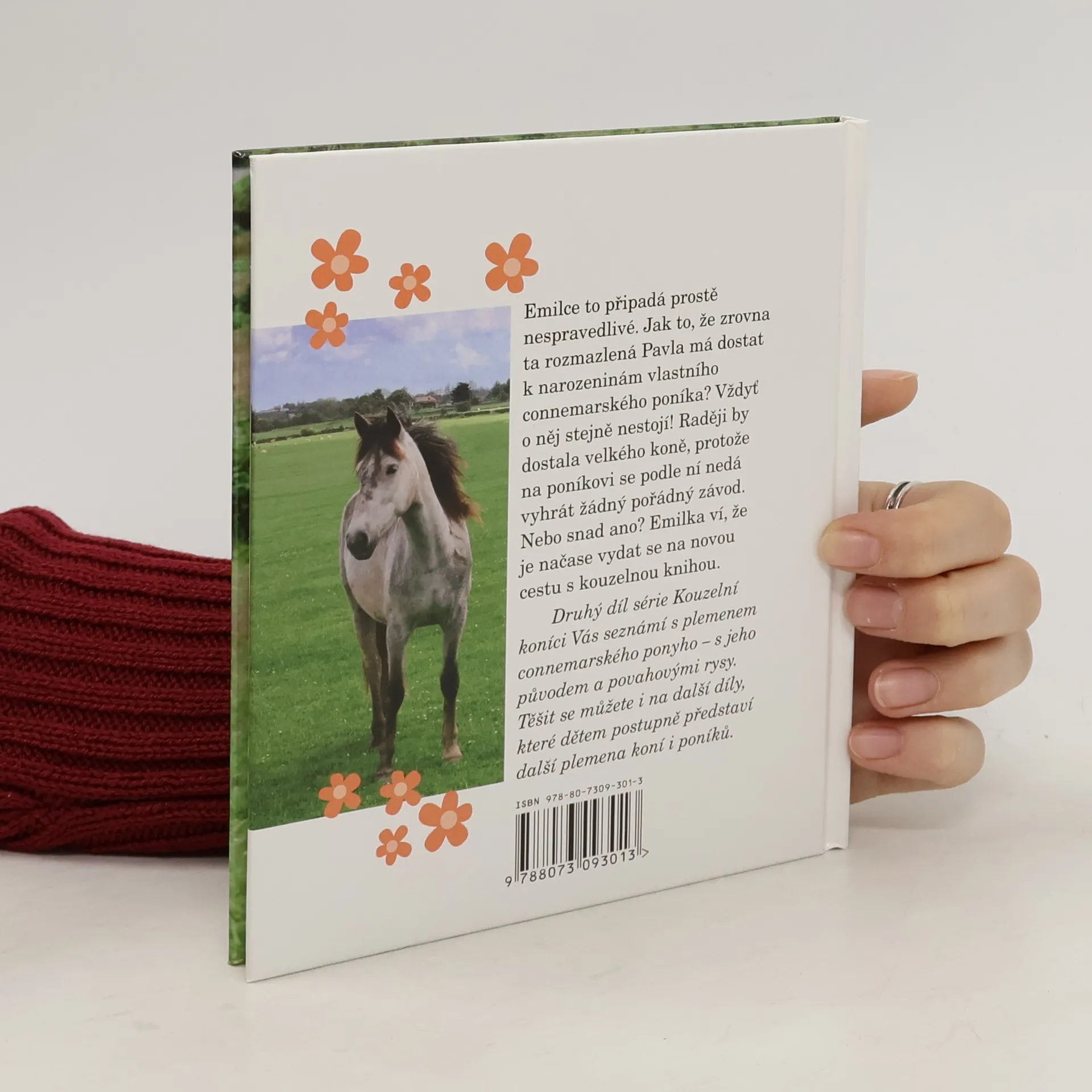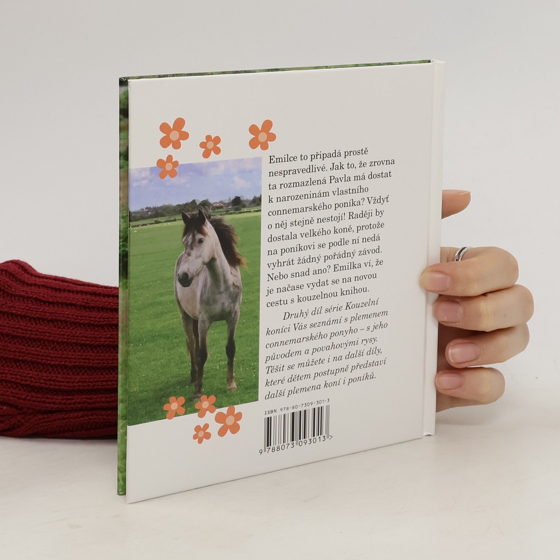 Emilce to připadá prostě nespravedlivé.Jak to, že zrovna ta rozmazlená Pavla má dostat k narozeninám vlastního connemarského poníka? Vždyť o něj stejně nestojí! Raději by dostala velkého koně, protože na poníkovi se podle ní nedá vyhrát žádný pořádný závod. Nebo snad ano? Emilka ví, že je načase vydat se na novou cestu s kouzelnou knihou. Druhý díl série kouzelní koníci Vás seznámí s plemenem connemarského ponyho – s jeho původem a povahovými rysy. Těšit se můžete i na další díly, které dětem postupně představí další plemena koní a poníků.
