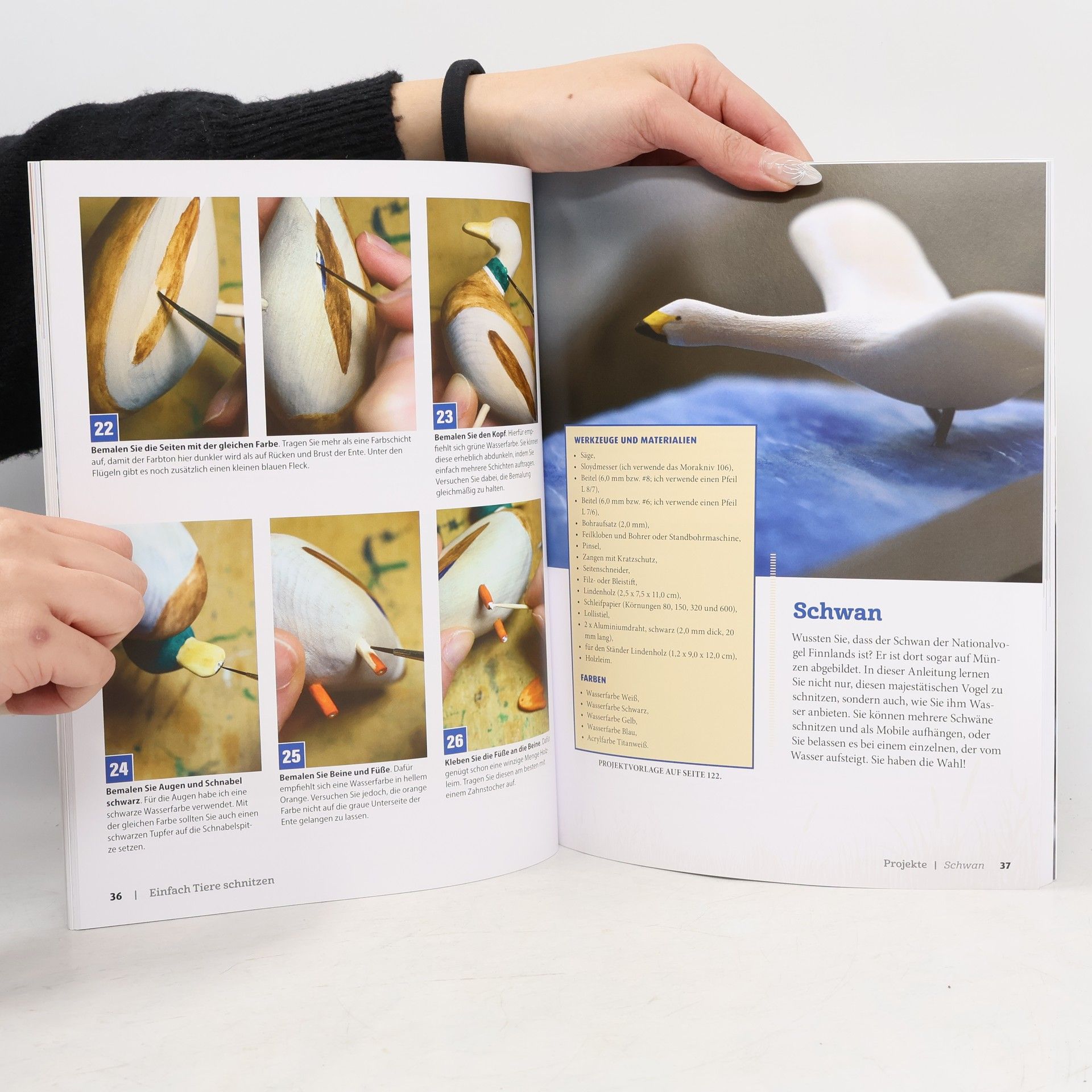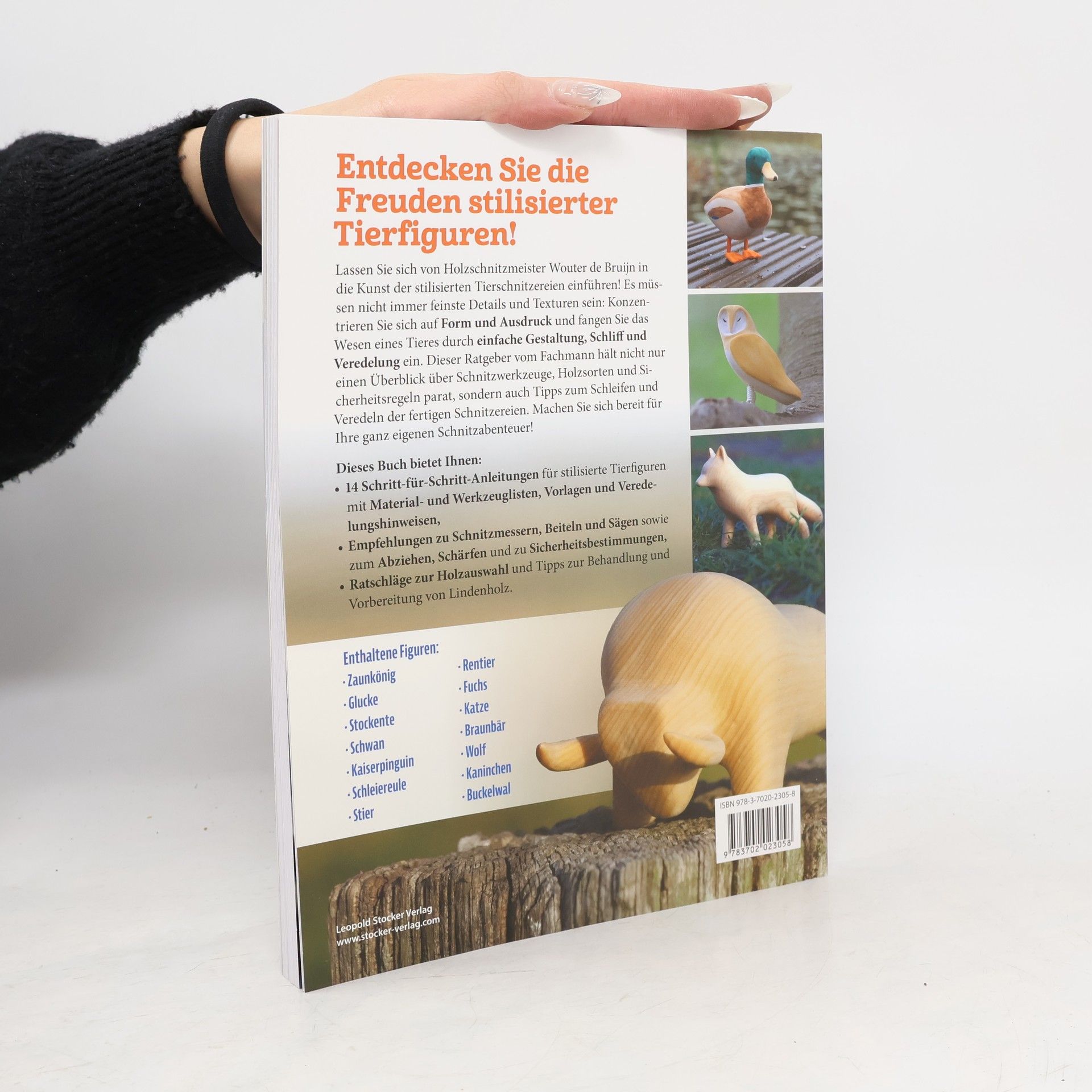 Ein wertvoller Begleiter für Einsteiger und Fortgeschrittene: Der Autor führt Schritt für Schritt an zahlreiche Tierschnitzereien wie Zaunkönig, Henne, Ente, Schwan, Stier, Rentier, Katze, Bär, Wolf und Kaninchen heran, die ohne aufwändige Detailarbeit auskommen. Die ausdrucksstarken Werke erreichen ihre Wirkung vielmehr durch klare Konturen und eine unkomplizierte, naturnahe Formgebung. Hinzu kommen Tipps zur Bemalung, die am lebendigen Vorbild orientiert ist. Allgemeine Hinweise zu Werkzeug- und Holzauswahl sowie zu den wichtigsten Sicherheitsregeln ergänzen die Anleitungen.