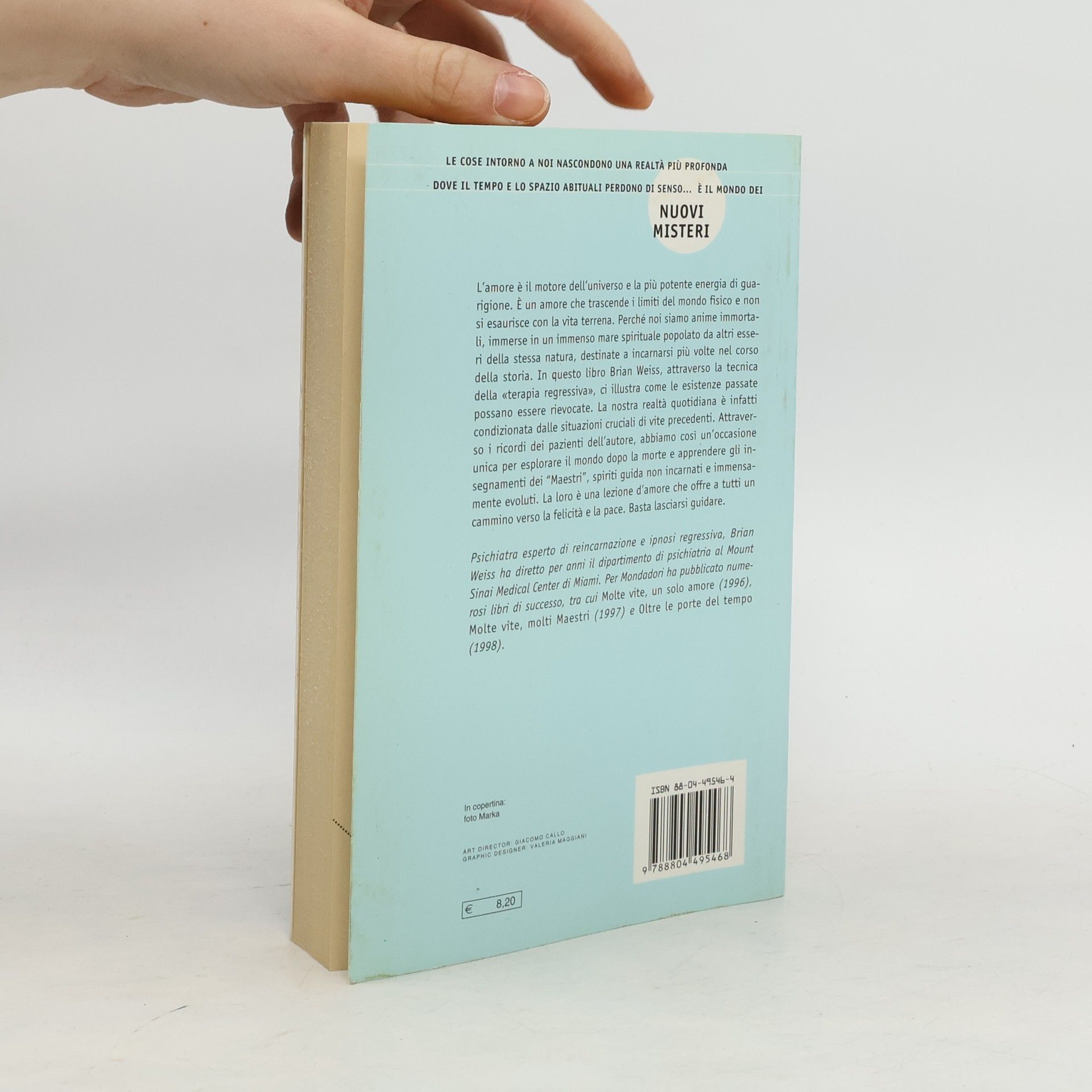 L’amore è il motore dell’universo e la più potente energia di guarigione. Per Brian Weiss è un sentimento che trascende i limiti del mondo fisico e non si esaurisce con la vita terrena. Perché noi siamo anime immortali, destinati a incarnarci più volte nel corso della storia. Con la tecnica della terapia regressiva il dottor Weiss ci spiega come riportare alla mente memorie delle nostre vite precedenti, i cui eventi cruciali continuano a influenzare la nostra realtà quotidiana. Attraverso i ricordi dei suoi pazienti l’autore ci offre un’occasione unica per esplorare il mondo dopo la morte e apprendere gli insegnamenti dei Maestri, spiriti guida altamente evoluti che non hanno una forma fisica.