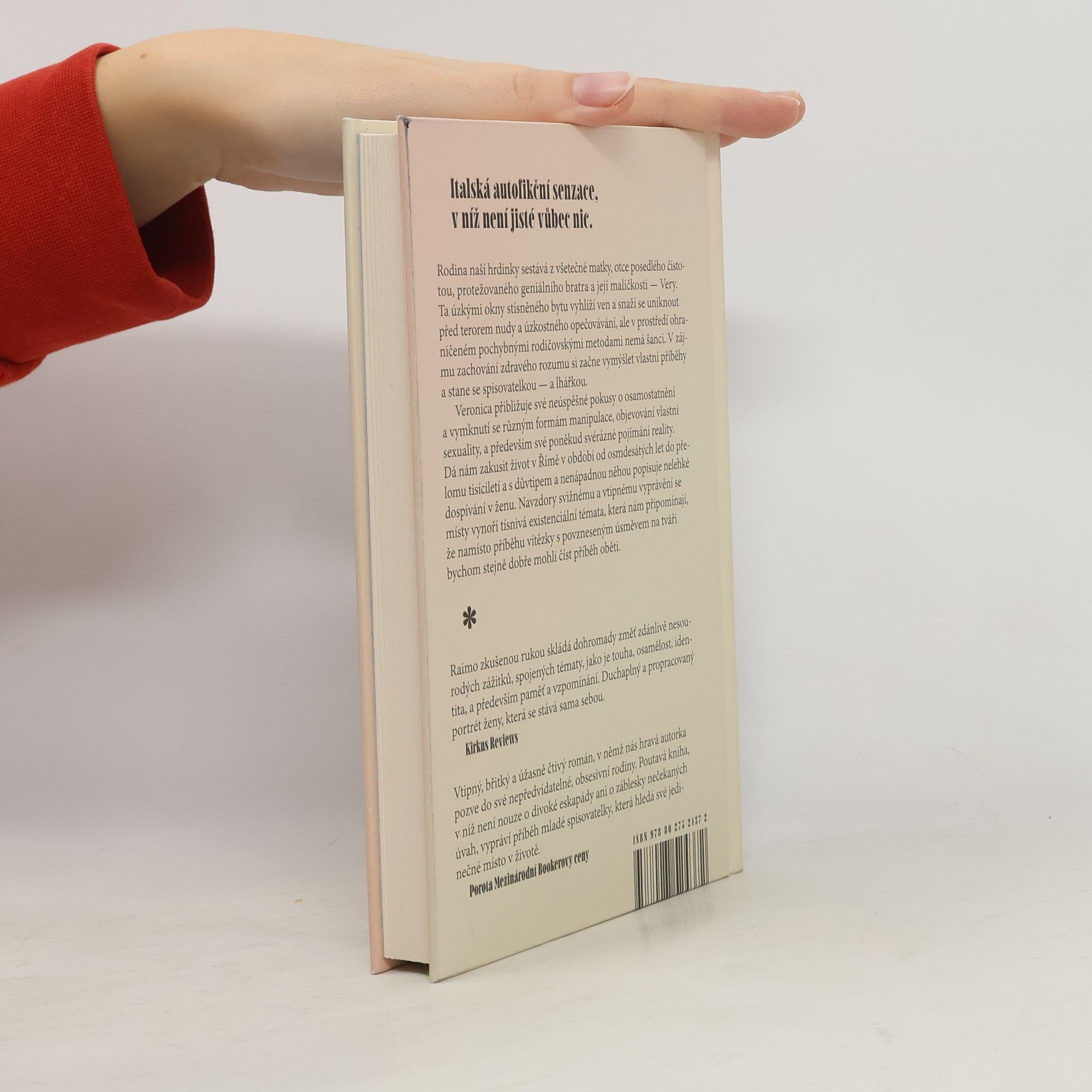 Rodina naší hrdinky sestává z všetečné matky, otce posedlého čistotou, protežovaného geniálního bratra a její maličkosti — Very. Ta úzkými okny stísněného bytu vyhlíží ven a snaží se uniknout před terorem nudy a úzkostného opečovávání, ale v prostředí ohraničeném pochybnými metodami rodičů nemá šanci. V zájmu zachování zdravého rozumu si začne vymýšlet vlastní příběhy a stane se spisovatelkou — a lhářkou. Veronica přibližuje své neúspěšné pokusy o osamostatnění a vymknutí se různým formám manipulace, objevování vlastní sexuality, a především své poněkud svérázné pojímání reality. Dá nám zakusit život v Římě v době od osmdesátých let do přelomu tisíciletí a s důvtipem a nenápadnou něhou popisuje nelehké téma — dospívání v ženu. Navzdory svižnému a vtipnému vyprávění se místy vynoří tísnivá existenciální témata, která nám připomínají, že namísto příběhu vítězky se šarmantně povzneseným úsměvem na tváři bychom stejně dobře mohli číst příběh oběti.