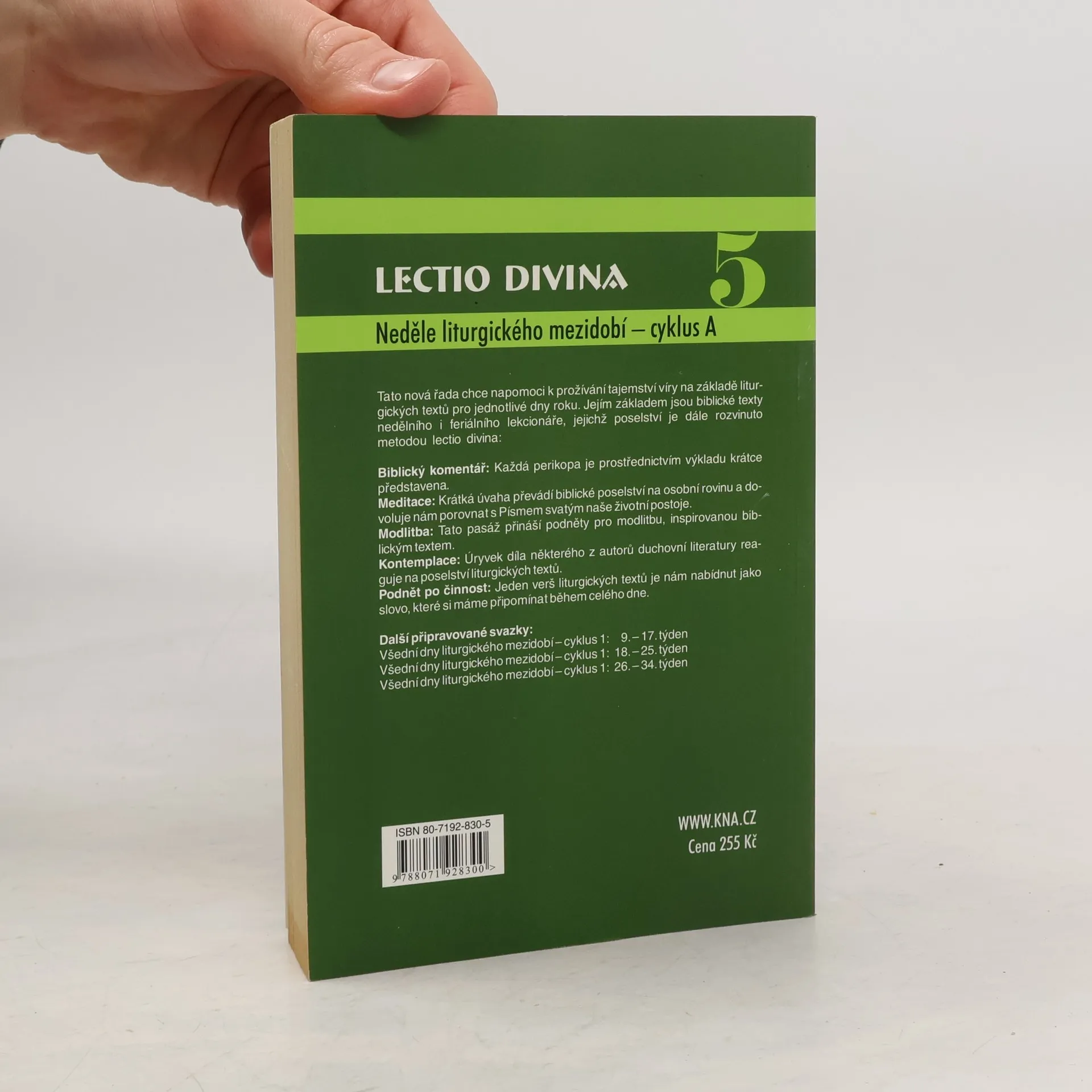Neděle liturgického mezidobí - cyklus A. Řada publikací Lectio divina chce napomoci k prožívání tajemství víry na základě liturgických textů pro jednotlivé dny roku. Jejím základem jsou biblické texty nedělního i feriálního lekcionáře, jejichž poselství je dále rozvinuto metodou lectio divina: biblický komentář, meditace, modlitba, kontemplace, podnět pro činnost. Celý projekt počítá s 15 svazky, které postihnou všechny dny liturgického roku (památky a svátky svatých, jež nemají přednost před nedělí, nejsou zahrnuty). Samostatně jsou zpracovány oba feriální a všechny tři nedělí cykly lekcionáře. Vzhledem k rozsáhlosti a specifikům celého projektu nemusí na sebe jednotlivé svazky lectia ohledně svého číslování vždy přesně navazovat. Tak například již dříve vydaný svazek číslo 6 předchází svazku 5, s nímž přichází KNA nyní.
