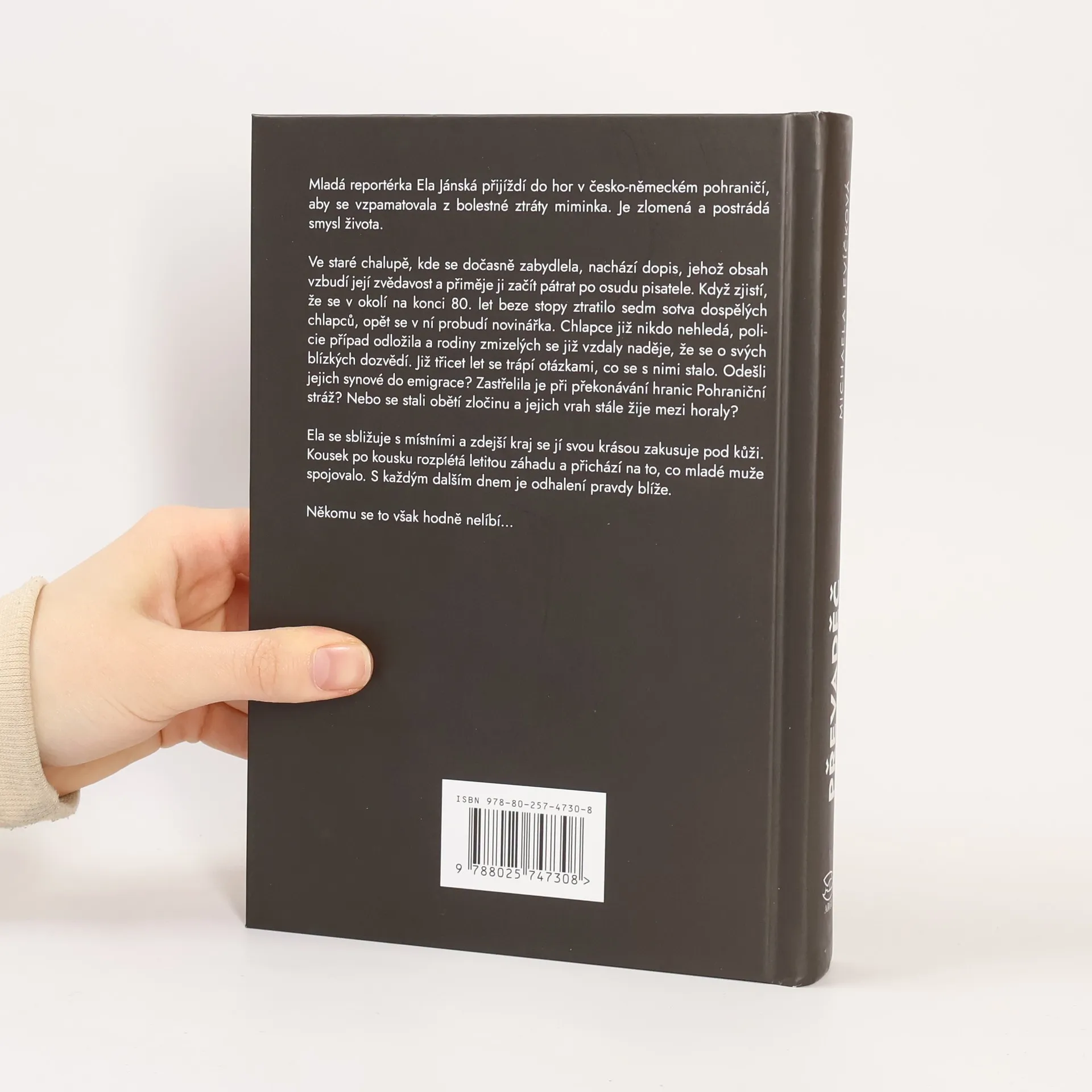 Reportérka Ela Jánská přijíždí do hor k německým hranicím, aby se vzpamatovala z bolestné ztráty miminka. Je zlomená a postrádá důvod žít. Ve staré chalupě, kde se dočasně zabydlí, však najde dopis, který ji přiměje sebrat síly a vypátrat, co se stalo pisateli. Když zjistí, že se v okolí na konci 80. let beze stopy ztratilo několik sotva dospělých chlapců, novinářka v ní se zvedne z popela. Cítí závazek dát všem zoufalým rodinám odpovědi. Nikdo jiný totiž chlapce dávno nehledá. Policie případ odložila a rodiče se vzdali naděje. Nevědomost jim už přes třicet let ničí životy. Emigrovaly jejich děti? Zastřelila je pohraniční stráž, když chtěly utéct do Německa? Žije snad jejich vrah stále mezi horaly?Ela se sbližuje s místními a zdejší kraj se jí svou krásou zakusuje pod kůži. Kousek po kousku rozplétá letitou záhadu a přichází na to, co mladé muže spojovalo. S každým dalším dnem je odhalení pravdy blíže. Někomu se to však hodně nelíbí…Bude pro Elu Jánskou pomoc druhým cestou ven z osobní tragédie, nebo ji šťourání se v minulosti bude stát život?