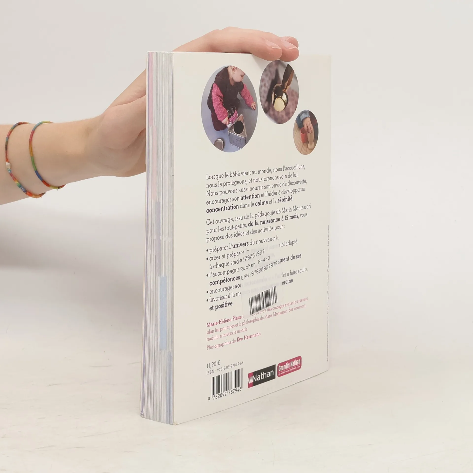 Lorsque le bébé vient au monde, nous l'accueillons, nous le protégeons, et nous prenons soin de lui. Nous pouvons aussi nourrir son envie de découverte, encourager son attention et l'aider à développer sa concentration dans le calme et la sérénité. Cet ouvrage, issu de la pédagogie de Maria Montessori pour les tout-petits, de la naissance à 15 mois, vous propose des idées et des activités pour : préparer l'univers du nouveau-né, créer et préparer le matériel sensoriel adapté à chaque stade de son évolution, l'accompagner dans le développement de ses compétences, encourager son autonomie et " l'aider à faire seul ", favoriser à la maison une ambiance sereine et positive.