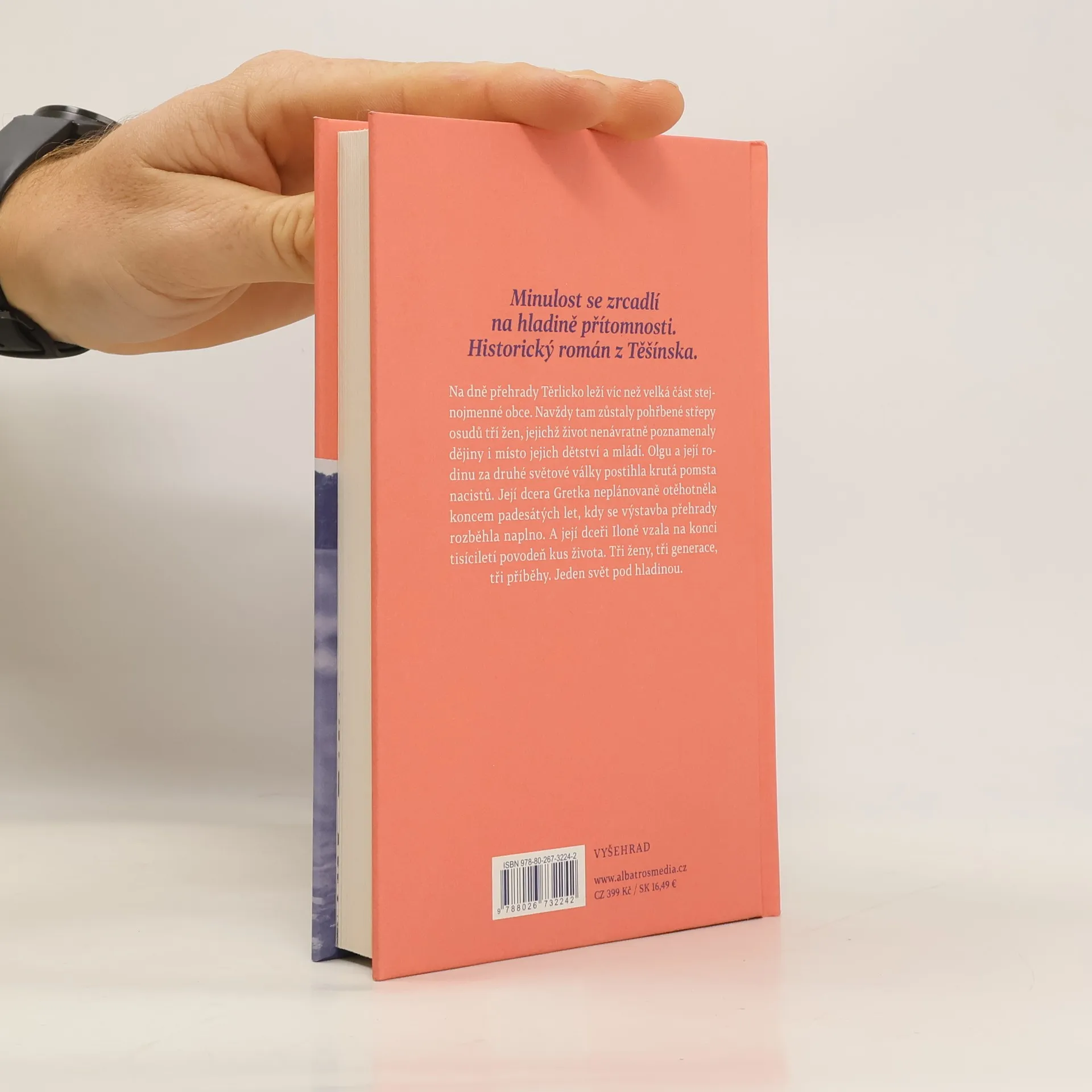 Minulost se zrcadlí na hladině přítomnosti. Historický román z Karvinska. Na dně přehrady Těrlicko leží víc než velká část stejnojmenné obce. Navždy tam zůstaly pohřbené střepy osudů tří žen, jejichž život nenávratně poznamenaly dějiny i místo jejich dětství a mládí. Olgu a její rodinu za druhé světové války postihla krutá pomsta nacistů. Její dcera Gretka neplánovaně otěhotněla koncem 50. let, kdy se výstavba přehrady rozběhla naplno. A její dceři Iloně vzala na konci tisíciletí povodeň kus života. Tři ženy, tři generace, tři příběhy. Jeden svět pod hladinou.