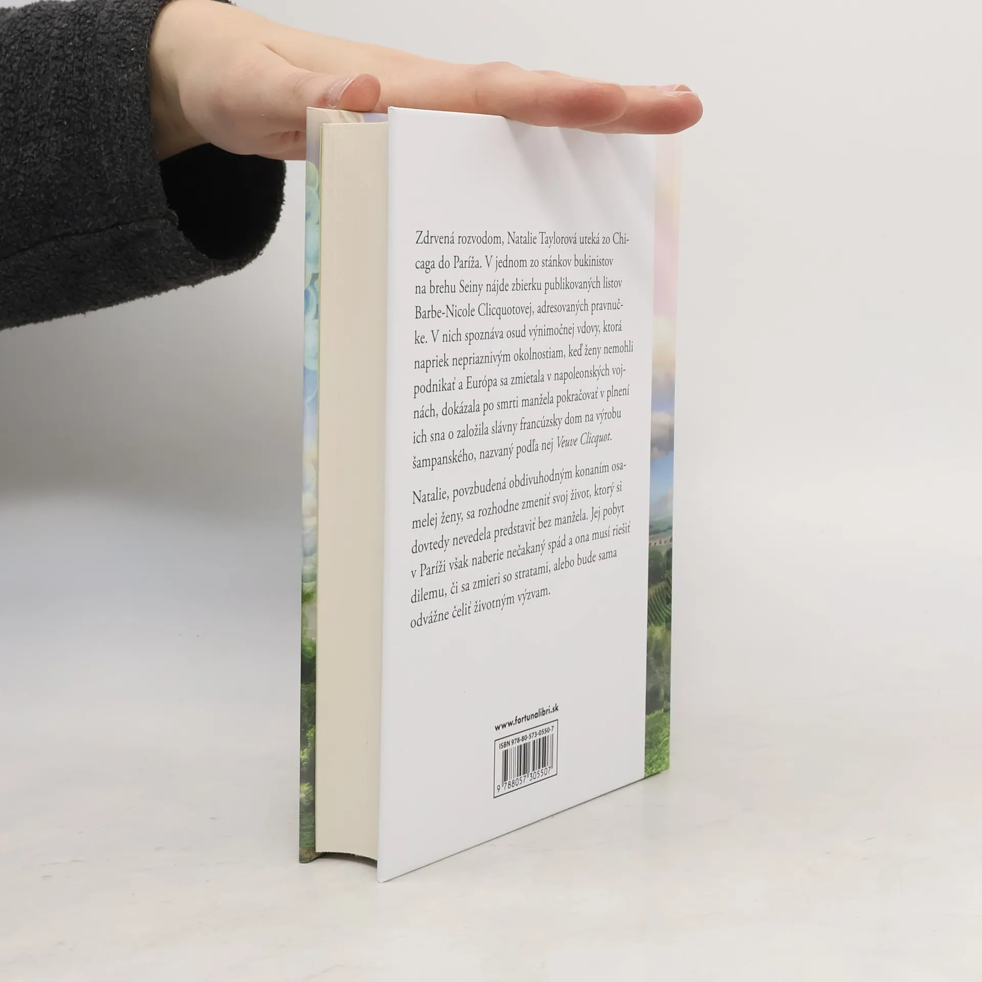 Zdrvená rozvodom, Natalie Taylorová uteká zo Chicaga do Paríža. V jednom zo stánkov bukinistov na brehu Seiny nájde zbierku publikovaných listov Barbe-Nicole Clicquotovej, adresovaných pravnučke. V nich spoznáva osud výnimoč-nej vdovy, ktorá napriek nepriaznivým okolnostiam, keď ženy nemohli podnikať a Európa sa zmietala v napoleonských vojnách, dokázala po smrti manžela po-kračovať v plnení ich sna o založila slávny francúzsky dom na výrobu šampan-ského, nazvaný podľa nej Veuve Clicquot. Natalie, povzbudená obdivuhodným konaním osamelej ženy, sa rozhodne zme-niť svoj život, ktorý si dovtedy nevedela predstaviť bez manžela. Jej pobyt v Paríži však naberie nečakaný spád a ona musí riešiť dilemu, či sa zmieri so stratami, alebo bude sama odvážne čeliť životným výzvam.
