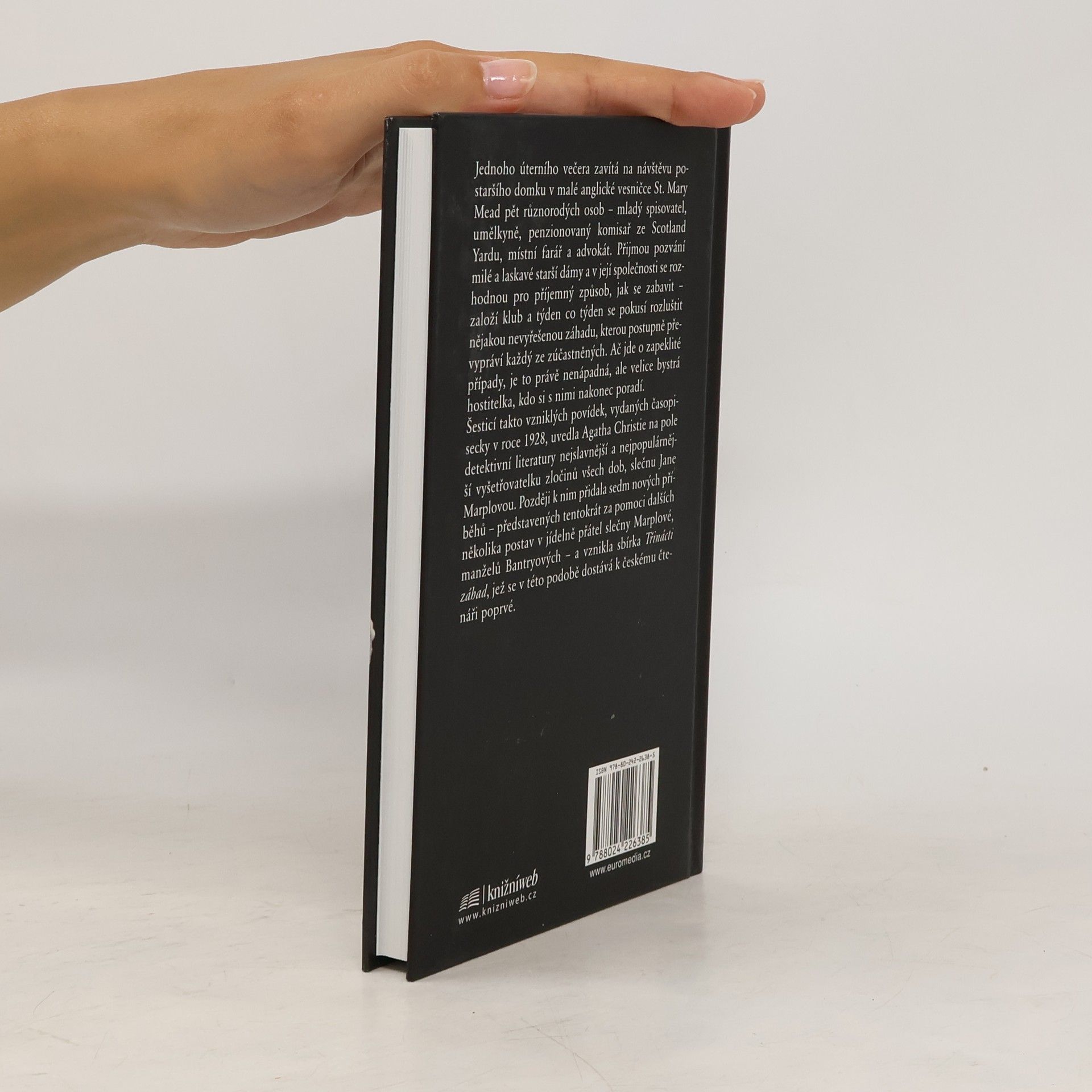 Jednoho úterního večera zavítá na návštěvu postaršího domku v malé anglické vesničce St. Mary Mead pět různorodých osob – mladý spisovatel, umělkyně, penzionovaný komisař ze Scotland Yardu, místní farář a advokát. Přijmou pozvání milé a laskavé starší dámy a v její společnosti se rozhodnou pro příjemný způsob, jak se zabavit – založí klub a týden co týden se pokusí rozluštit nějakou nevyřešenou záhadu, kterou postupně převypráví každý ze zúčastněných. Ač jde o zapeklité případy, je to právě nenápadná, ale velice bystrá hostitelka, kdo si s nimi nakonec poradí. Šesticí takto vzniklých povídek, vydaných časopisecky v roce 1928, uvedla Agatha Christie na pole detektivní literatury nejslavnější a nejpopulárnější vyšetřovatelku zločinů všech dob, slečnu Jane Marplovou. Později k nim přidala sedm nových příběhů – představených tentokrát za pomoci dalších několika postav v salonu přátel slečny Marplové, manželů Bantryových – a vznikla sbírka Třinácti záhad, jež se v této podobě dostává k českému čtenáři poprvé.