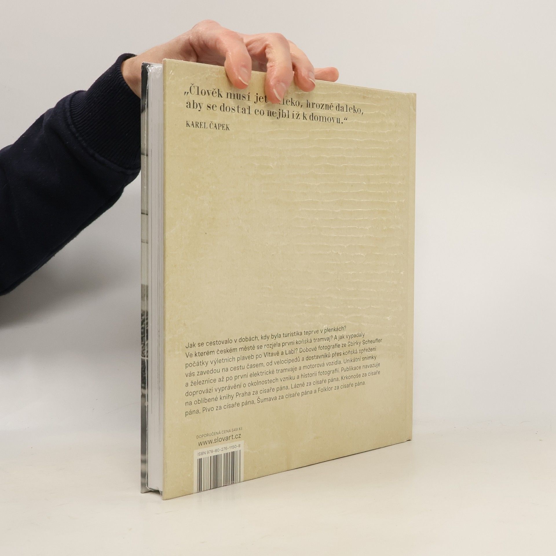 Jak se cestovalo v dobách, kdy byla turistika teprve v plenkách? Ve kterém českém městě se rozjela první koňská tramvaj? A jak vypadaly počátky výletních plaveb po Vltavě a Labi? Dobové fotografie ze Sbírky Scheufler vás zavedou na cestu časem, od velocipedů a dostavníků přes koňská spřežení a železnice až po první elektrické tramvaje a motorová vozidla. Unikátní snímky doprovází vyprávění o okolnostech vzniku a historii fotografií. Publikace navazuje na oblíbené knihy Praha za císaře pána, Lázně za císaře pána, Krkonoše za císaře pána, Pivo za císaře pána, Šumava za císaře pána a Folklor za císaře pána.