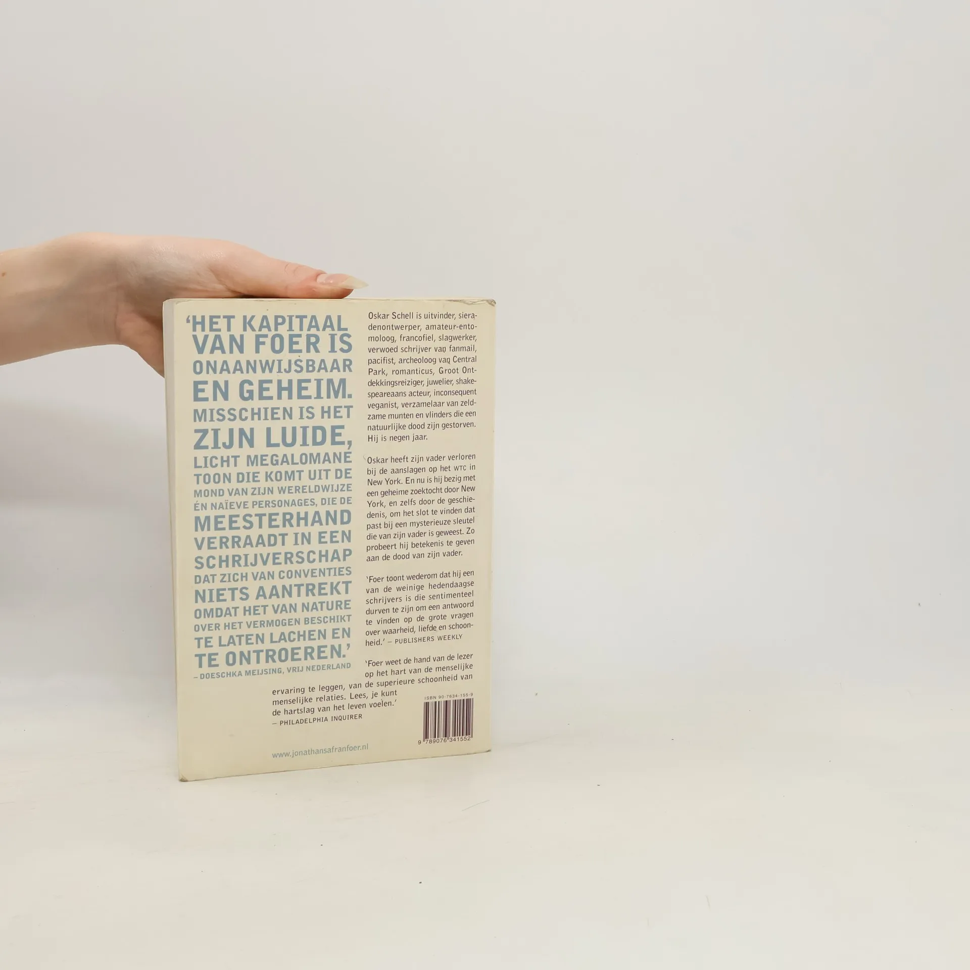 Oskar Schell is uitvinder, sieradenontwerper, amateur-entomoloog, francofiel, slagwerker, verwoed schrijver van fanmail, pacifist, archeoloog van Central Park, romanticus, Groot ontdekkingsreiziger, juwelier, acteur (Yorick in de schoolvoorstelling van Hamlet), inconsequent veganist, verzamelaar van: zeldzame munten, vlinders die een natuurlijke dood zijn gestorven, Beatles-spullen, miniatuurcactussen en halfedelstenen. Hij is negen jaar. Oskar heeft zijn vader verloren bij de aanslagen op het WTC in New York. In zijn vaders kledingkast vindt Oskar een vaas, en wanneer hij die per ongeluk laat vallen ontdekt hij een vreemd uitziende sleutel. Dan begint voor de jonge Oskar een zoektocht die hem door heel New York zal voeren, in een poging betekenis te geven aan de zinloze dood van zijn vader. Jonathan Safran Foer (1977) studeerde filosofie aan Princeton. ‘Alles is verlicht’ werd in vele talen vertaald, bekroond met diverse prijzen en is een wereldwijde bestseller.