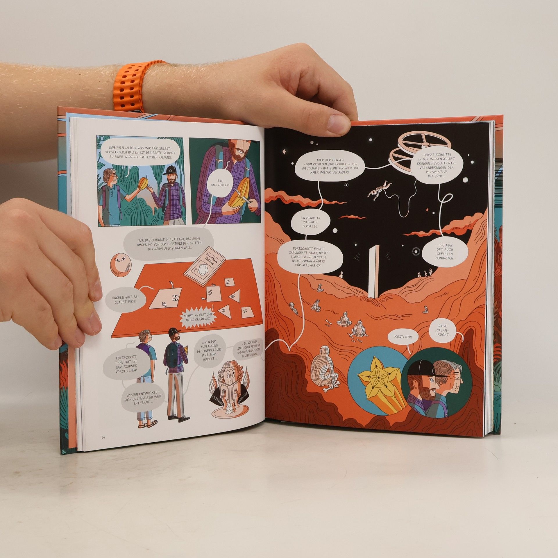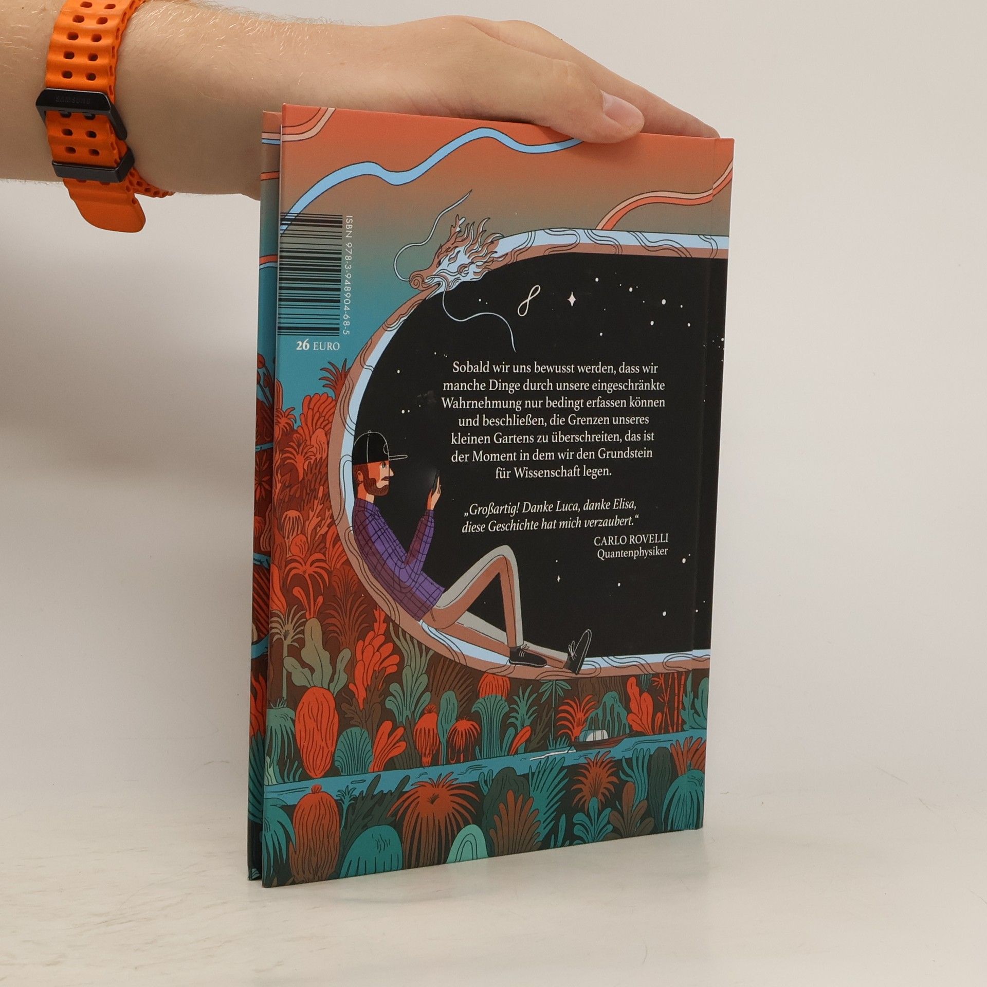 Als junger Kunststudent in Marseille ist Luca Pozzi bereits fasziniert von naturwissenschaftlicher Forschung zum Universum, der Natur der Zeit und wie all das zusammenhängt. Er ahnt nicht, dass der noch nicht ganz so berühmte Wissenschaftler Carlo Rovelli in unmittelbarer Nähe mit seinen Kollegen an neuen Theorien zur Vereinbarkeit von Relativitätstheorie und Quantenphysik brütet. Viele Jahre später aber treffen sich der Künstler und der Wissenschaftler und führen ein langes Gespräch. Ebendieses Gespräch ist der Anlass dafür, dass Jahre später diese außergewöhnliche Graphic Novel entstand. Elisa Macellari, Illustratorin, Comiczeichnerin und Luca Pozzis Lebenspartnerin,fand Bilder, die Lucas Geschichte von der Begegnung mit Quantenphysik und dem großen Physiker auf Augenhöhe in eine unterhaltsame und lehrreiche Graphic Novel verwandelte. Das Buch ist eine faszinierende Reflexion über den Ursprung der Wissenschaft, Raum und Zeit und den Fortschritt von Theorien. Die verschmelzenden Gedankengängen der beiden Protagonisten entfachen schnell die Neugier auf die Geheimnisse des Universums - die so unergründlich gar nicht sind, wie uns die Wissenschaft zeigt, auch weil Vieles durch die herausragende Visualisierung von Elisa intuitiv verstanden werden kann.