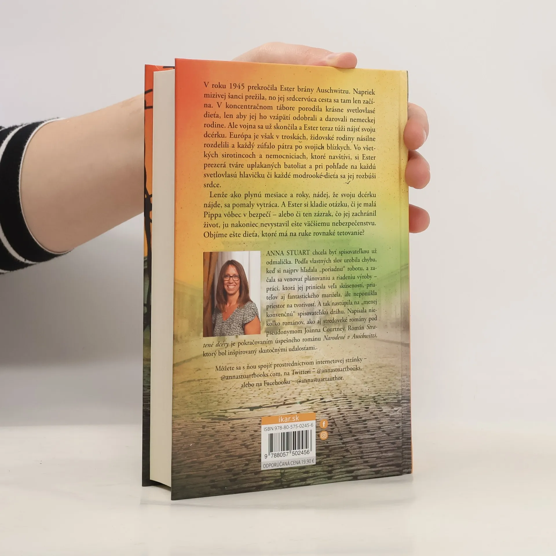Pokračovanie bestsellerového románu Narodené v Auschwitzi V roku 1945 prekročila Ester brány Auschwitzu. Napriek mizivej šanci prežila, no jej srdcervúca cesta sa tam len začína. V koncentračnom tábore porodila krásne svetlovlasé dieťa, len aby jej ho vzápätí odobrali a darovali nemeckej rodine. Ale vojna sa už skončila a Ester teraz túži nájsť svoju malú dcérku. Európa je však v troskách, židovské rodiny násilne rozdelili a každý zúfalo pátra po svojich blízkych. Vo všetkých sirotincoch a nemocniciach, ktoré navštívi, si Ester prezerá tváre uplakaných batoliat a pri pohľade na každú svetlovlasú hlavičku a každé modrooké dieťa sa jej rozbúši srdce. Lenže ako plynú mesiace a roky, nádej, že svoju dcérku nájde, sa pomaly vytráca. A Ester si kladie otázku, či je malá Pippa vôbec v bezpečí – alebo či ten zázrak, čo jej zachránil život, ju nakoniec nevystavil ešte väčšiemu nebezpečenstvu. Objíme ešte dieťa, ktoré má na ruke rovnaké tetovanie?