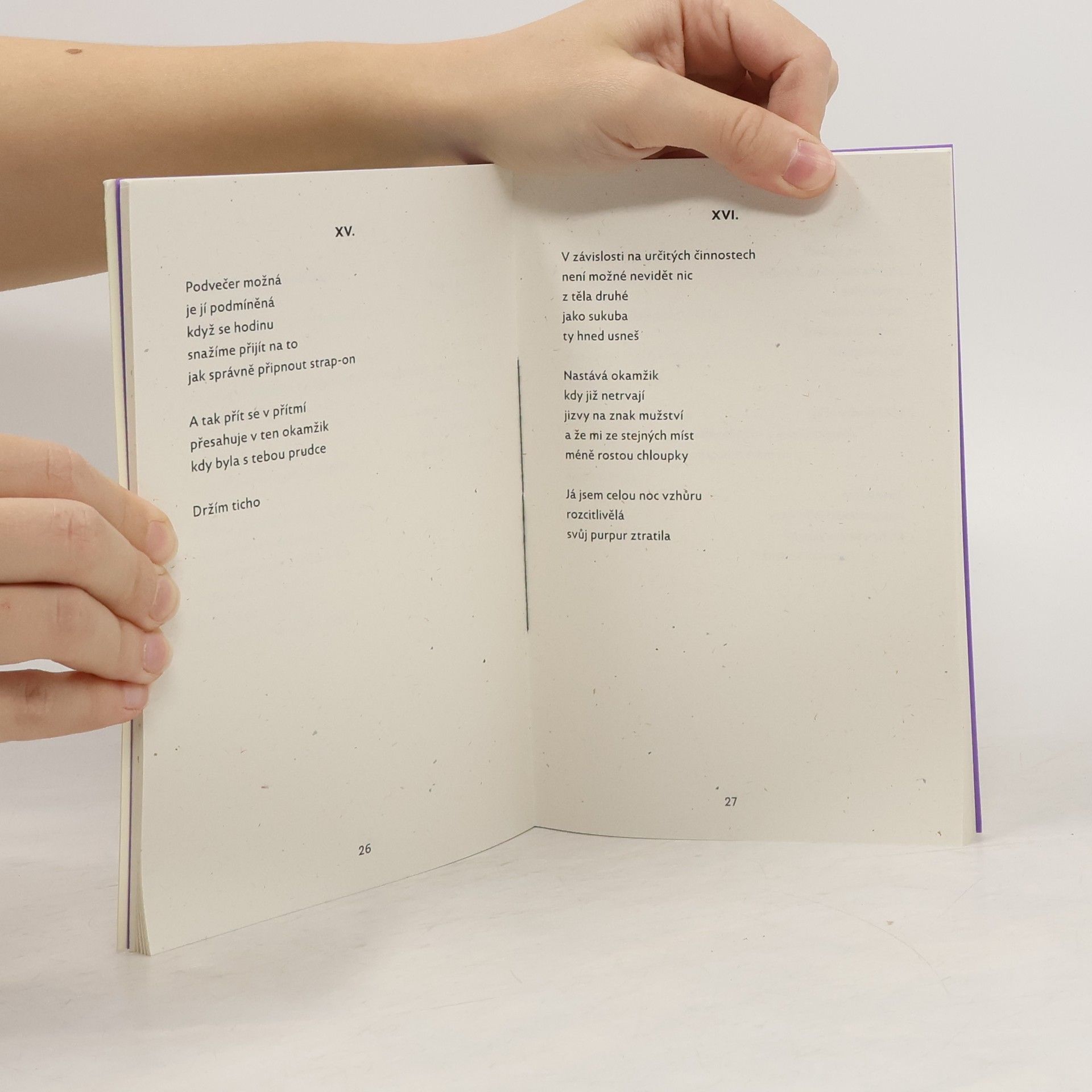 Sbírka s názvem Objev purpurové barvy představuje Mellanii Kašjak jako autorku výrazně intimní a reflexivní lyriky. V knize se opakuje řada témat, která jsou širokému čtenářstvu známá a srozumitelná (milostné, partnerské vztahy, lidská blízkost, strach či osamění), nicméně Kašjak jako lyrická subjektka zaobaluje všechna tato témata mj. do toho, že je transgender žena a k této skutečnosti připojuje řadu aluzí, odkazů na výtvarné umění, pověsti či tradice. Poezie Mellanie Kašjak je poezií okázalého básnického gesta a prakticky osobního mýtu.Mellanie Kašjak ve své sbírce destiluje purpur – barvu králů, revolucí i skrytých bolestí. Slova pulsují na hraně viditelného spektra, střídají jemné vibrace s explozemi významů. OBJEV PURPUROVÉ BARVY není pouhou sbírkou poezie – je to manifest citlivosti, laboratoř emocí, v níž se čtenář stává experimentátorem. Jste připraveni vidět barvy, které dosud zůstávaly skryté?Jak je u nás již zvykem, ke knize jsme vytvořili i zin s názvem Nepojmenované části těla. Oddaní fanoušci si za symbolický příplatek mohou pořídit rozšířené vydání, které obsahuje další básně a ilustrace, jež se do hlavní knihy nevešly. (Marie Nedoryová, Aleš Kauer)