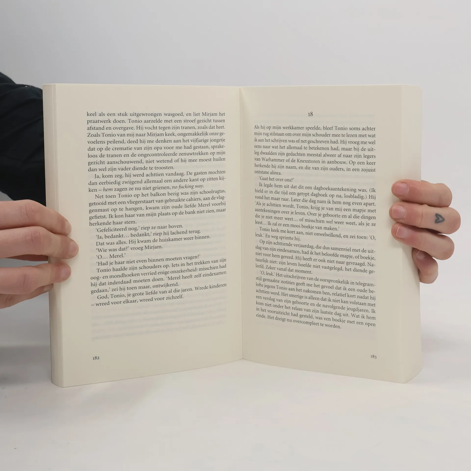 In de vroege morgen van Eerste Pinksterdag 2010 wordt Tonio van der Heijden, het enig kind van Adri van der Heijden en Mirjam Rotenstreich, ter hoogte van het Vondelpark in het centrum van Amsterdam geschept door een auto. Hij wordt in kritieke toestand naar het Academisch Medisch Centrum vervoerd, waar hij diezelfde dag aan zijn verwondingen overlijdt. Tonio zal niet ouder worden dan 21 jaar. A.F.Th. van der Heijden doet het enige waar hij op dat moment toe in staat is: in zijn herinnering graven, aantekeningen maken, schrijven. Daarbij voortgedreven door twee dwingende vragen: wat gebeurde er met Tonio in de laatste uren en dagen voorafgaand aan de ramp, en hoe kon dit ongeluk plaatsvinden? Een zoektocht naar het wat en het hoe, die leidt langs verschillende ooggetuigen, vrienden, politiemensen, artsen en het mysterieuze meisje Jenny, dat in de laatste weken van Tonio's leven een cruciale rol blijkt te hebben vervuld. Tonio vormt de neerslag van die zoektocht. Een nauwgezette reconstructie van een jongensleven en een radeloze queeste naar zin en betekenis.